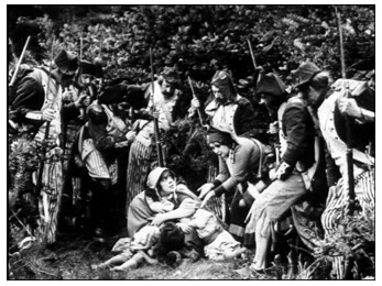 On reste également pantois à la vision du prodigieux plan séquence qui fait longuement défiler tout le bataillon des bleus et se prolonge, une fois le dernier soldat sorti de l’image, sur la lande déserte jusqu’à ce que le spectateur, intrigué par cette immobilité suspecte, s’attende à voir surgir les chouans embusqués qui ne tardent d’ailleurs pas à apparaître, comme sortant de terre, pour bientôt envahir toute l’image et nous faire prendre conscience avec effroi qu’ils étaient là, invisibles, depuis le début.