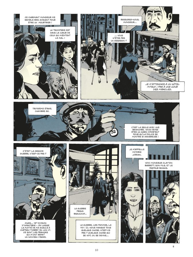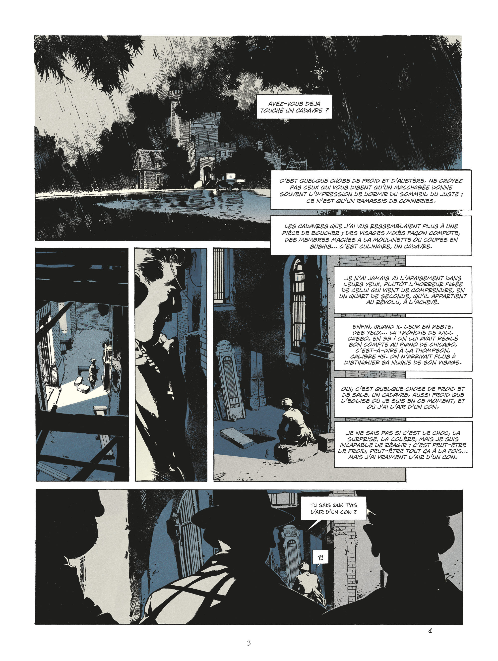 Ainsi, l’histoire est riche, dense et particulièrement bien charpentée. Même habitué aux récits de ce genre, il est possible d’être surpris par la noirceur absolue qui habite de bout en bout ces pages et est totalement assumée par les auteurs : les rares éclaircies s’avèrent également plombées. Si le récit est mené à la première personne, cela n’exonère nullement le personnage principal de ses responsabilités et d’être toujours davantage du côté obscur de la force…