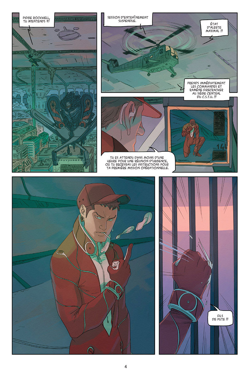 Le premier tome de la série RUST avait lancé un univers chaotique et coloré, avec son lot de personnages pour le moins hauts en couleurs. On les retrouve étrangement avec plaisir capturés dans une cité secrète, dans un endroit où ils sont en vérité à leur place. L’avantage d’avoir des héros psychotiques, c’est qu’on ne se fait pas trop de mauvais sang pour eux, quoiqu’il leur arrive, ce ne sera pas pire que ce qu’ils pourraient faire eux-mêmes. Sans être attachants, ils n’ont pas vraiment de circonstances atténuantes ou de moments de bravoure incroyables, mais on a envie de savoir ce qu’il va se passer. Petit exemple, un nouveau personnage fait son entrée dès le début de Grey Day : un colonel déserteur héros de guerre et fan de mangas de surcroît. Un beau CV et une belle carrure, qui veut mettre fin au despotisme du professeur responsable des RUST et des douze cités, tant que l’on y est. Malheureusement pour lui, l’histoire va se révéler assez courte... Du coup, le lecteur est assez déstabilisé, car d’autres s’obstinent à survivre...