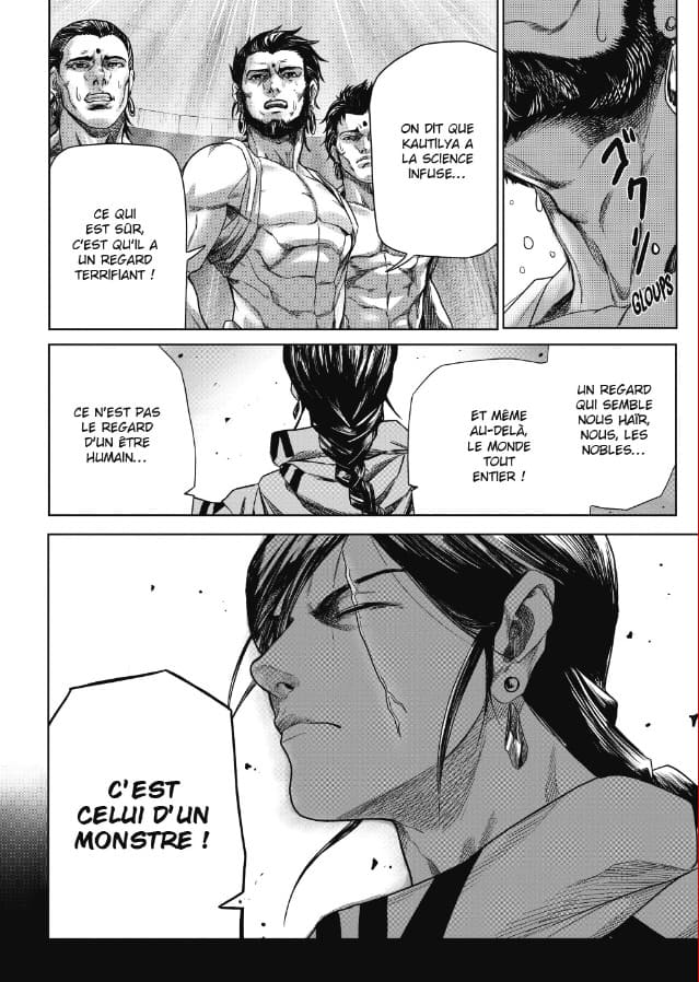Kouta Innami continue à expliquer les références et les spécificités avec des notes de bas de page au cours du manga. S’il y a quelques scènes d’action, la part belle est faite à la diplomatie et à la réflexion. On ne s’ennuie pas pour autant, Kautilya jouant une partie d’échec au niveau de l’Inde tout entière. On peut juste regretter qu’il rencontre peu d’obstacles à la hauteur de sa légendaire intelligence. Mais peut-être que le troisième tome le mettra en situation périlleuse ?