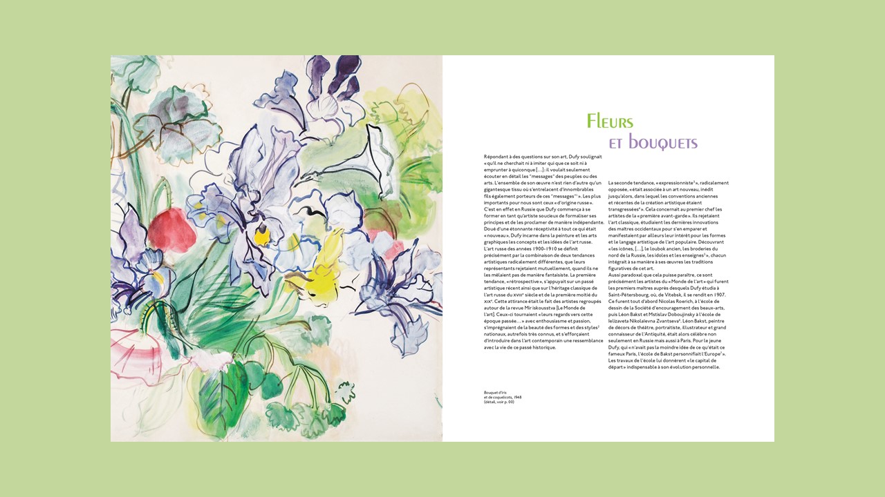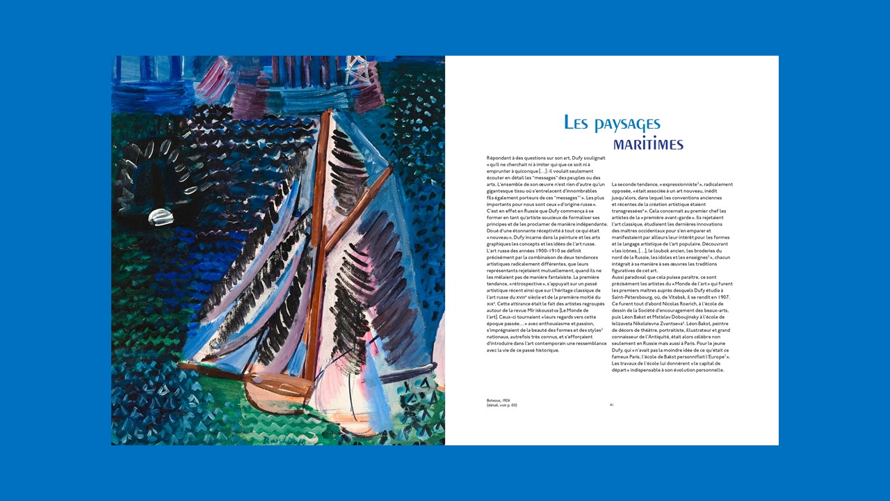 Sophie Krebs, Brigitte Léal et Laurence Campa ont rédigé les articles de ce livre, se penchant sur les différentes périodes de la vie de Raoul Dufy. Nadia Chalbi s’est occupé des textes d’accompagnement, tandis que Bruno Monnier et Fabrice Helgott ont écrit respectivement introduction et préface. Un magnfique catalogue d’exposition.