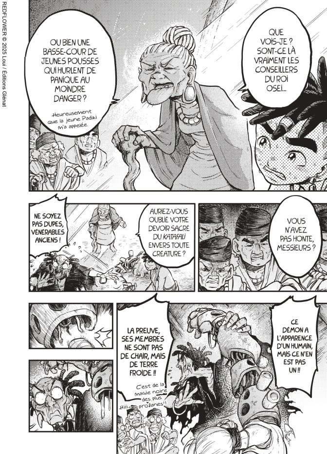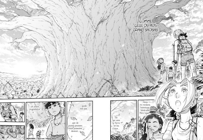 Ce second tome nous en apprend plus sur ce peuple fascinant que sont les Bao’ré ! Loui s’inspire de la culture africaine pour créer le lore de ce peuple. Les pages de « documentaires » entre les chapitres apportent de la crédibilité à l’ensemble et nous ont beaucoup intéressé. Il ne faut cependant pas croire qu’il s’agit d’un livre d’anthropologie, le mangaka nous livre une histoire d’aventure et d’action bourrée d’humour avec un Kéli toujours aussi « à côté de la plaque » lorsqu’il s’agit des émotions humaines. Même s’il faut lui reconnaître une certaine évolution dans ce sens au cours du récit.