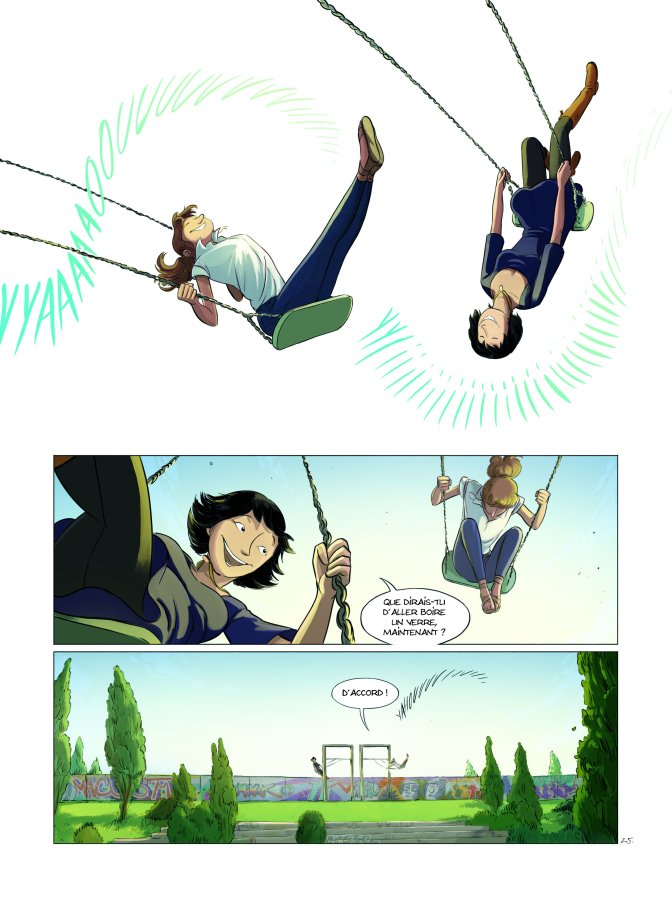 Bertrand Escaich : Petite anecdote, si vous allez à Berlin, le Mauer Park, le parc représenté sur la couverture du tome deux, existe vraiment. La balançoire existe aussi mais elle n’est pas double, elle est simple. On a juste ajouté l’autre. Juste un petit clin d’œil au cas où quelqu’un le remarquerait.