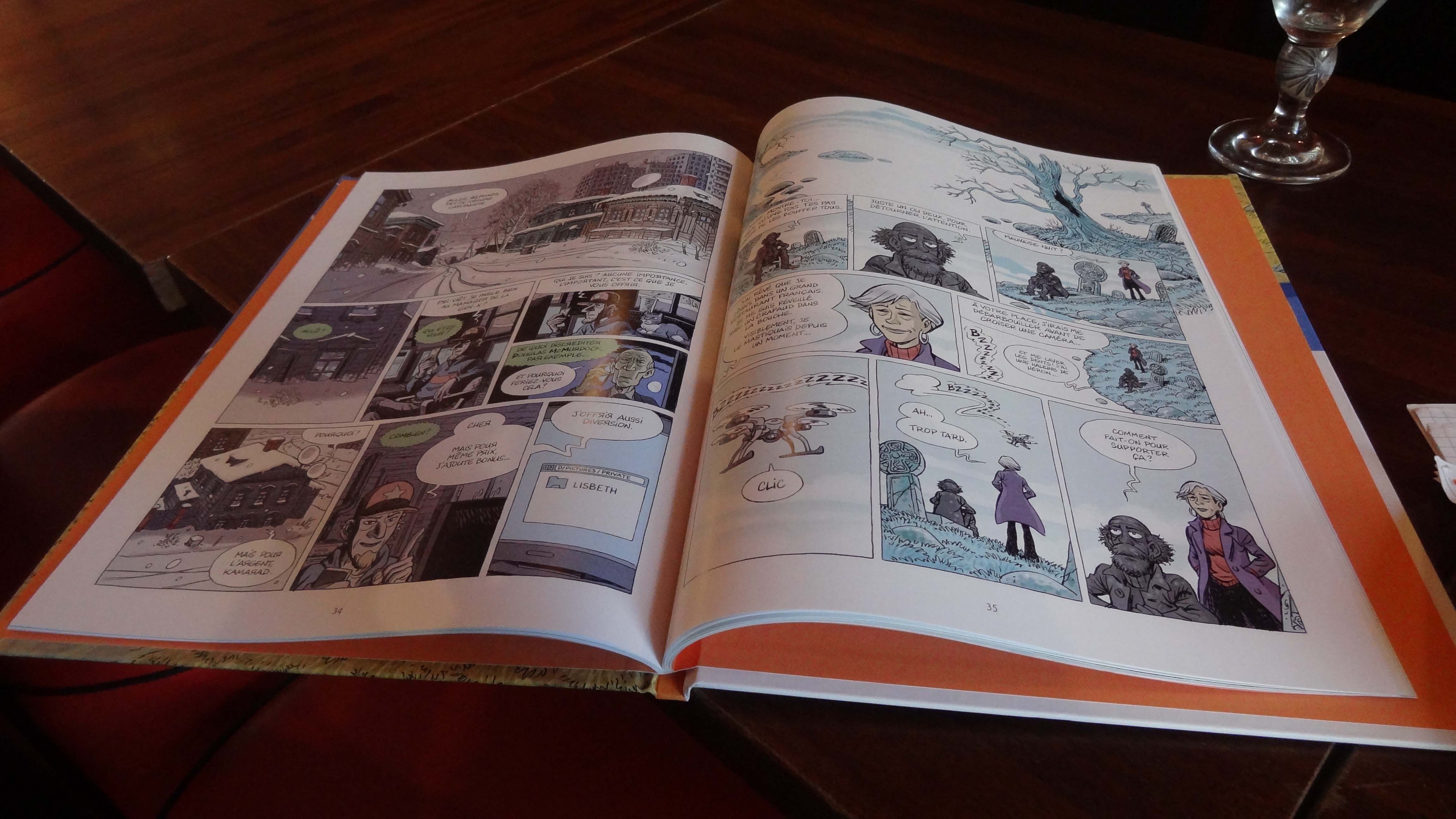 Ça explose quelques pages plus tard mais l’idée était que ça explose à un moment ou à un autre. Je me suis servi d’un truc rigolo : un peu plus tôt dans l’album, je me suis moqué d’Anonymous en introduisant le groupe hacktiviste « Incognitus ».