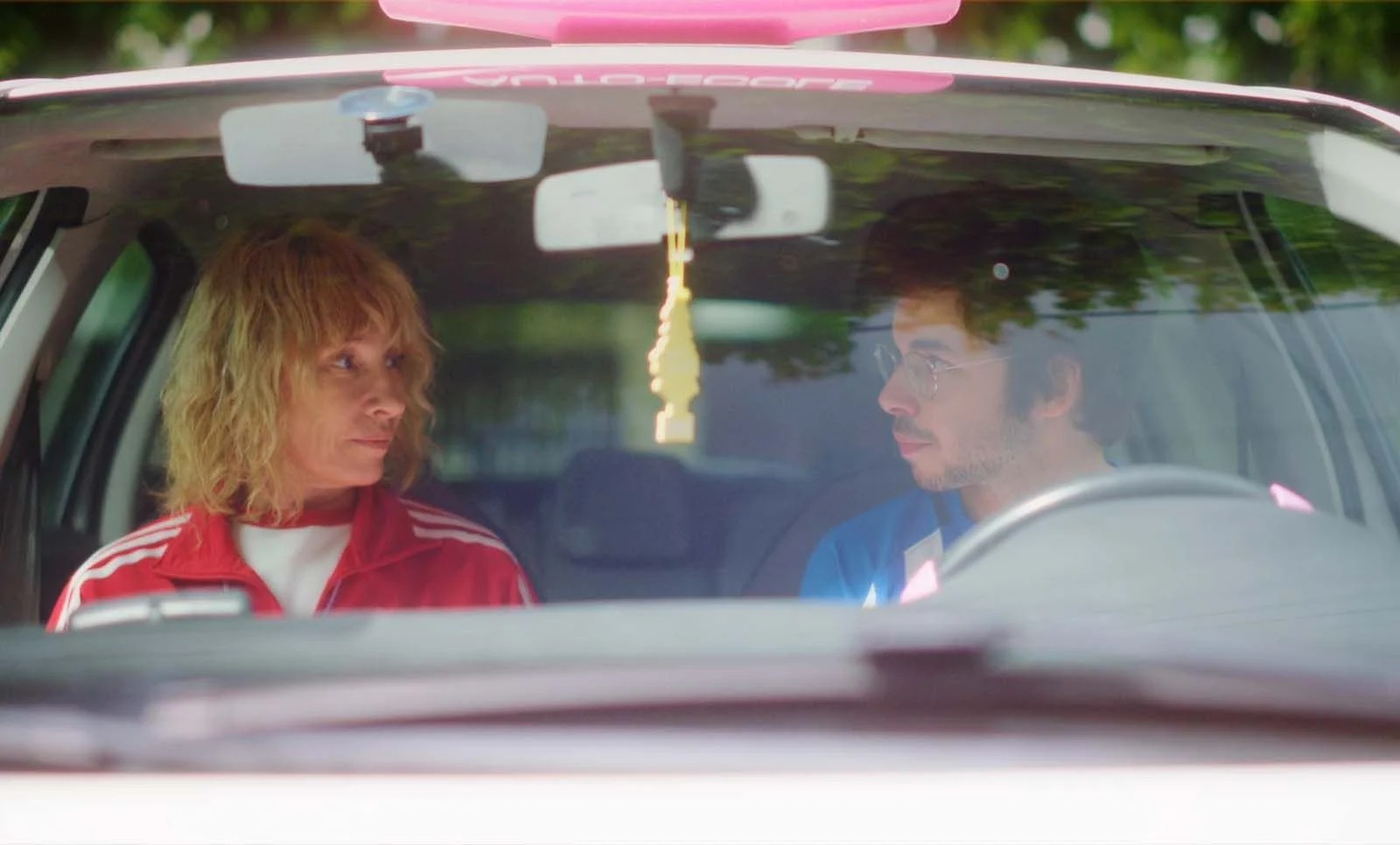 Je me suis entouré de plusieurs comédiens de ma génération avec lesquels j’avais déjà travaillé, comme Sébastien Chassagne, Anaïde Rozam ou William Lebghil, et je suis effectivement allé chercher une autre génération d’acteurs et d’actrices plus établis comme Emmanuelle Bercot, Géraldine Pailhas ou Michel Hazanavicius que je trouve assez peu utilisé alors que c’est un très bon acteur. Cela me paraissait cohérent qu’il joue le père de mon personnage car nous avons deux masculinités complètement différentes. Emmanuelle Bercot possède à la fois cette franchise et cette énergie propres à cette monitrice d’auto-école complètement décalée. J’étais persuadée que ça allait matcher. Géraldine Pailhas a beaucoup de vie, d’énergie, et en même temps une certaine douceur mêlée à une belle intensité. Elle ressemble un peu à ma maman. Avec un côté à la fois tellement bienveillant et généreux.