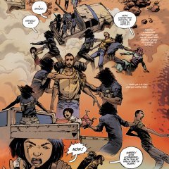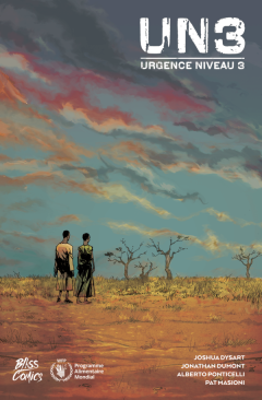 Pat Masioni : Le projet d’Urgence Niveau 3 a maintenant quelques années. C’est Joshua [Dysart], avec qui j’avais déjà travaillé sur Unknown Soldier [Le soldat inconnu de DC-Vertigo, traduit en Français chez Urban Comics], et le PAM [Programme Alimentaire Mondial] qui en sont à l’initiative. Joshua m’a sollicité pour ce projet, et on a mis notre collaboration au point lors du festival d’Alger, en 2014. À cette époque, il fallait encore récolter des fonds pour financer ce projet.