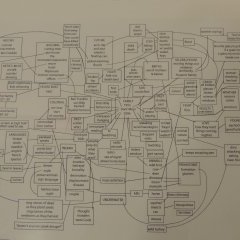 A se plonger dans les schémas et tableaux construits par l’auteur pour composer l’architecture des pages et les échos produits, on en cerne la rigueur… Les individus et les objets, pris comme des fragments, ne sont que des éléments constitutifs d’une scénographie et d’un récit qui font du Temps et de la Mémoire les protagonistes. L’Homme est Ici un être de passage, entre présence et absence, aux antipodes d’une sacralisation narrative qui lui est souvent affectée.