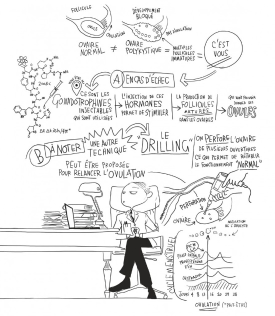 Elena se transforme en super-héroïne du quotidien : elle encaisse les tentatives infructueuses de traitement aux hormones, les prélèvements, les piqures et réflexions sans jamais exploser et fait la chasse aux perturbateurs endocriniens dans sa maison, sait-on jamais, il n’est peut-être pas trop tard pour que ses ovaires se réveillent.