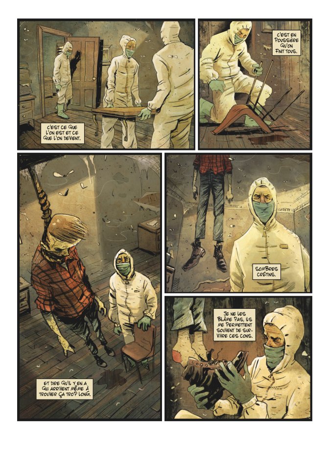 Les dernières pages de la BD donne un aperçu du travail de documentation des auteurs pour l’écriture de cette superbe série. On a hâte de découvrir l’histoire de tous les personnages, mais surtout, pourquoi et comment se sont-ils retrouvés embarqués dans cette situation. Gaet’s et Julien Monier réussissent à transcrire l’ambiance glauque et désespérée de la vie ces hommes et femmes, et malgré nous, malgré les corps décomposés et les débris pourrissants, on en veut encore ...