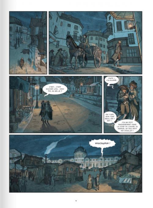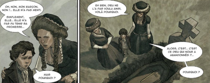 Critique : Certaines figures de l’Histoire demeureront pour toujours trop insaisissables, trop complexes et ambivalentes pour être véritablement comprises. À l’image d’un César ou d’une Aliénor d’Aquitaine, certains personnages fascinent autant qu’ils repoussent. Soyons clair, cet album est largement dans la catégorie des pro-Robespierre, et sans tomber dans l’éloge ou l’hagiographie, il donne une image globalement positive de l’être humain, plutôt même davantage que l’homme d’État. En effet, c’est tout d’abord son enfance, avec ce traumatisme de la perte de sa mère, ici représentée comme un phare jusqu’au bout, qui le rend plus empathique, un enfant perdu qui a du se relever, à l’ombre d’un père qui l’a abandonné, lui et quatre autres frères et sœurs. Ensuite, c’est la relation qu’il entretient avec Elisabeth Duplay qui l’isole en tant qu’amoureux, partageant une intimité dans une chambre qu’il loue. Enfin, ce sont ses escapades nocturnes jusqu’au Louvre, dans un atelier improvisé et nocturne de peinture, passionné et artiste. Au milieu de ces trois pierres angulaires délicates (car romancées), les discours du député, les références à Montesquieu ou Rousseau, les choix décisifs ou tragiques qu’il a porté à la tribune, rythment évidemment les deux années qui séparent les débuts des Jacobins à la chute de l’Incorruptible, décidé à ne pas exhorter le peuple à prendre les armes à sa suite. Un sacrifice républicain que l’histoire n’a peut-être pas assez retenu...