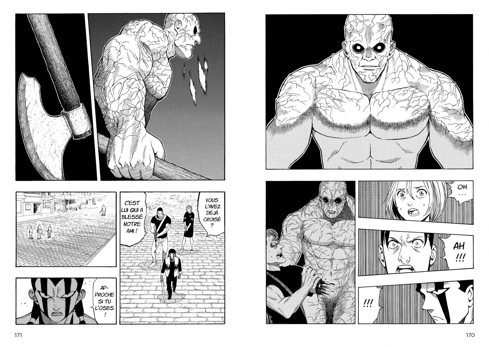 Les coupes de personnages sont un terme à prendre dans les deux sens du terme. Les coups, blessures et écorchages sont aussi variés que cruels, et même si l’on pourrait reprocher un penchant sadico-sexuel envers les femmes un peu exagéré, la violence reste l’enjeu principal de cette BD. Le dessin semble bien décidé à glacer le sang face aux « dévolués », ces créatures autrefois humaines qui mutent dans tous les sens et se battent pour le plaisir, et c’est cette surprise et ce déchaînement digne de film d’horreur qui rythme la cadence de l’album.