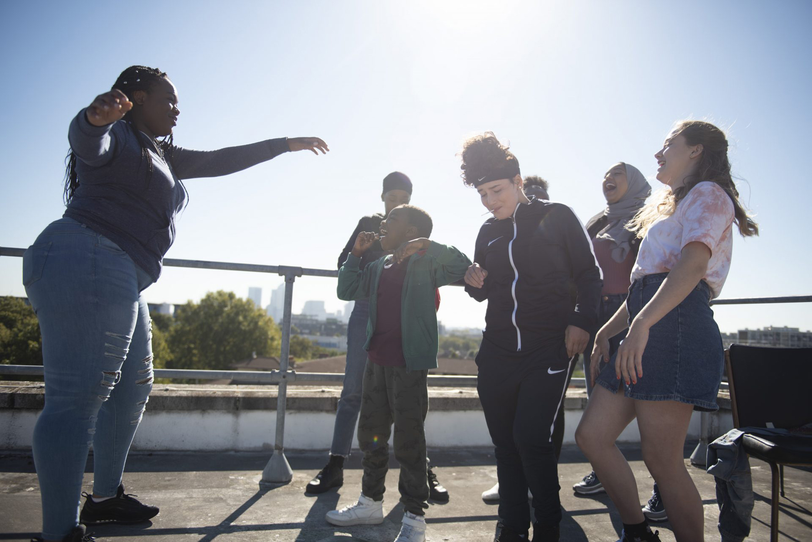 Rocks n’est pas un film féministe. C’est un film sur l’enfance au sein de l’environnement urbain du Royaume-Uni. Cette enfance s’incarne particulièrement dans le personnage de Rocks qui doit occuper les fonctions maternelles auprès de son petit frère Emmanuel, quand la maman du foyer, souffrant de troubles psychiatriques, disparaît du jour au lendemain. La bataille que va mener la jeune fille, pour éviter le placement de la fratrie, relève d’une sorte de guerre aussi orgueilleuse qu’admirable. Elle se bat pour éviter de donner à voir le constat d’une désintégration familiale annoncée, en esquivant la pénurie financière et en évitant soigneusement l’intervention des travailleurs sociaux. Cette bataille parfois prend le risque de l’invraisemblance, mais elle est sauvée par le jeu de Bukky Bakray qui interprète cette jeune lutteuse avec un enthousiasme et une intégrité bluffante. La comédienne parvient à habiter un personnage complexe, dont on reconnaît les traits de l’adolescence et ce que le psychologue Alan Carr a décrit sous le concept de "parentification". L’écriture du film insuffle une vie magnifique qui donne aux jeunes comédiennes des espaces à la libre interprétation de leurs émois adolescents. D’ailleurs, le générique de fin explique que les dialogues ont été coécrits avec des lycéens, ce qui explique la facilité avec laquelle ces enfants habitent leur rôle.