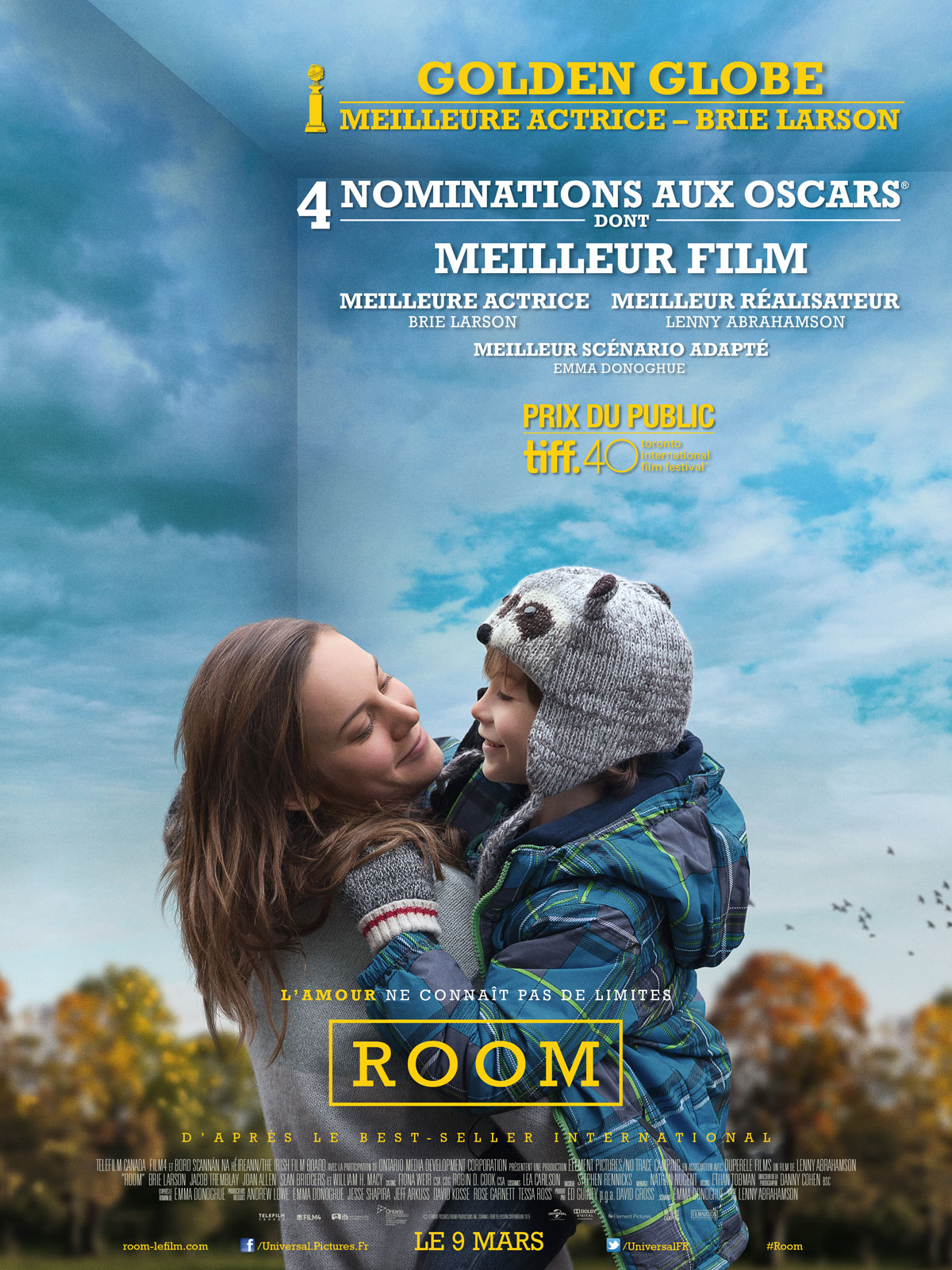 Résumé : Jack, cinq ans, vit seul avec sa mère, Ma. Elle lui apprend à jouer, à rire et à comprendre le monde qui l’entoure. Un monde qui commence et s’arrête aux murs de leur chambre, où ils sont retenus prisonniers. L’amour de Ma pour Jack la pousse à tout risquer pour offrir à son fils une chance de s’échapper et découvrir l’extérieur, une aventure à laquelle il n’était pas préparé.