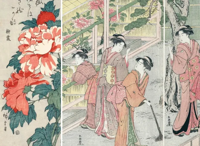 Roses, Pivoines et Iris par les grands maîtres de l’estampe japonaise est un coffret qui met en valeur les estampes magnifiques de nombreux artistes autour de ces trois fleurs hautement symboliques.