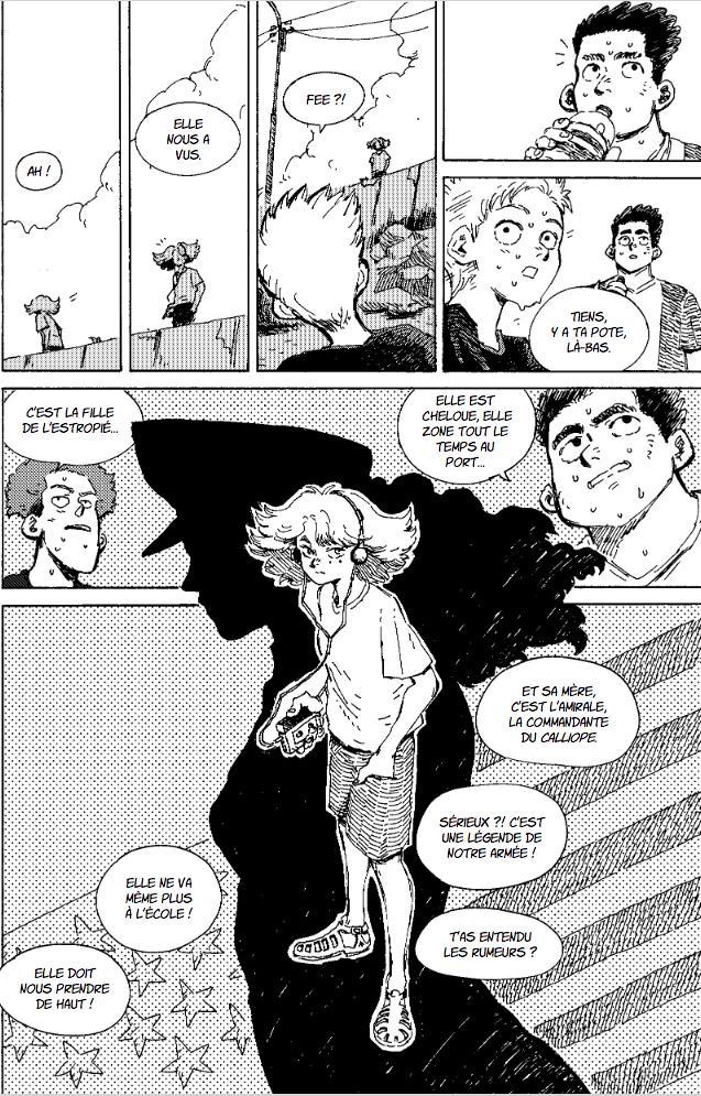 Résumé : Ce premier volume suit une jeune fille qui fait la planche dans l’eau en regardant les avions traverser le ciel. Sont annoncés au même moment l’ouverture des JO de 2036. Sur l’île d’Arrecquero, dans le Pacifique, un homme, Kurk, apprend qu’il souffre de la maladie de Charcot, il est condamné à plus ou moins long terme. La jeune fille sort de l’eau et découvre que trois ados ont pris ses chaussures. La bande à vélo se moque d’elle. Elle décide de ne pas se laisser faire...