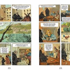 La composition des chapitres est homogène apportant de la clarté et une architecture solide à l’ensemble. Il s’ouvre chacun par un petit encart qui introduit un court scénario de bande dessinée conçu par le bédéiste Maurizio Busca et le chercheur John Tolan, l’ensemble est dessiné par Ernesto Anderle. Ces quelques pages de bande dessinée offrent au lecteur de découvrir une séquence historique précise. Puis une double page documentaire conclut le chapitre. Illustrée par des reproductions d’archives, celle-ci reprend et approfondit certains points de la séquence dessinée. Enfin, pour prolonger l’ensemble. Une petite bibliographie organisée par chapitre se trouve à la fin de l’ouvrage.