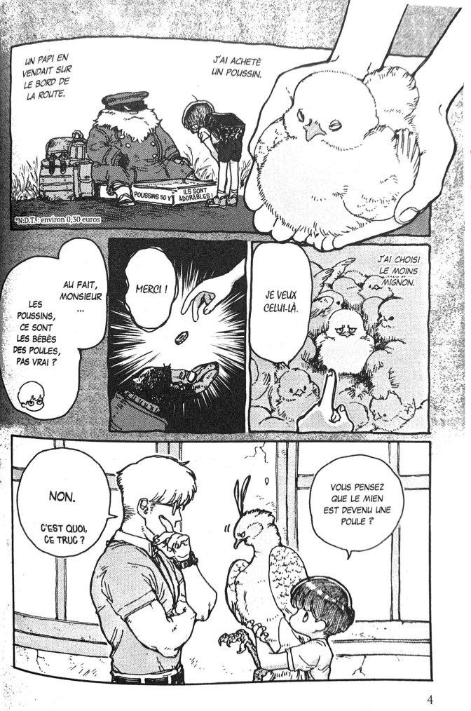 Dès la première page, nous nous sommes attachés à Sahashi, ce garçon profondément gentil et naïf, qui n’est pas sans rappeler un certain Candide. Lui qui ne voulait qu’adopter un petit poussin comme animal de compagnie se retrouve avec un Phénix dont la passion pour le poulet frit lui vaudra de s’appeler Karaage.