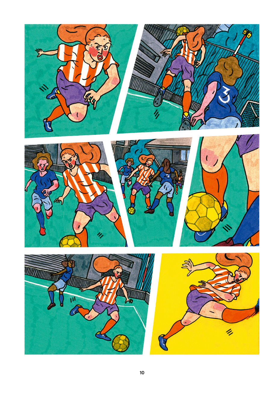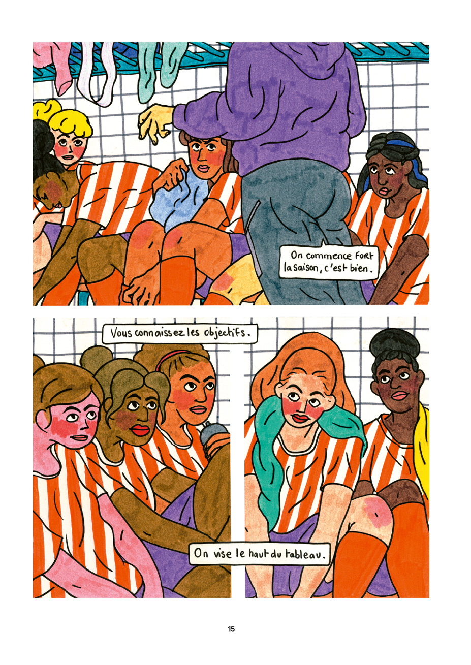 Ces derniers permettent régulièrement de centrer l’attention sur des attitudes, des regards, des gestes… effectués à la maison, au lycée, sur le terrain de foot… et qui en disent long sur un match, une relation affective, une lutte… Il est rare de ressentir une telle unité à la lecture d’une bande dessinée aussi foisonnante.
