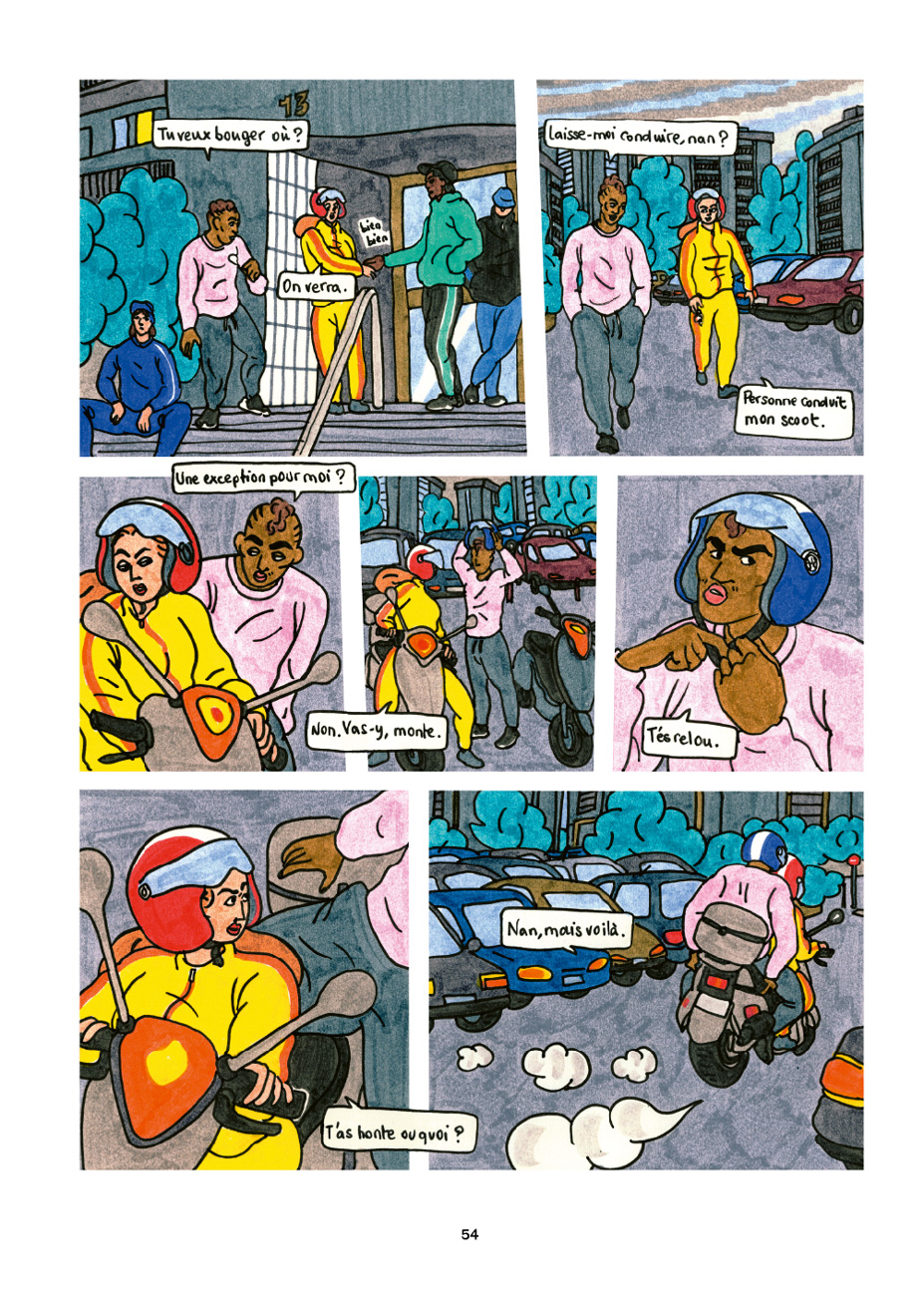 Ces qualités esthétiques et narratives sont au service d’une histoire bien charpentée et essentielle par les réflexions et valeurs qu’elle charrie. Chloé Wary parle des jeunes femmes et de la banlieue comme on l’a peu lu en bande dessinée. Et elle n’a pas peur de pousser jusqu’au bout certaines de ses idées, comme d’utiliser des ellipses lorsqu’il n’est pas nécessaire d’en dire plus.