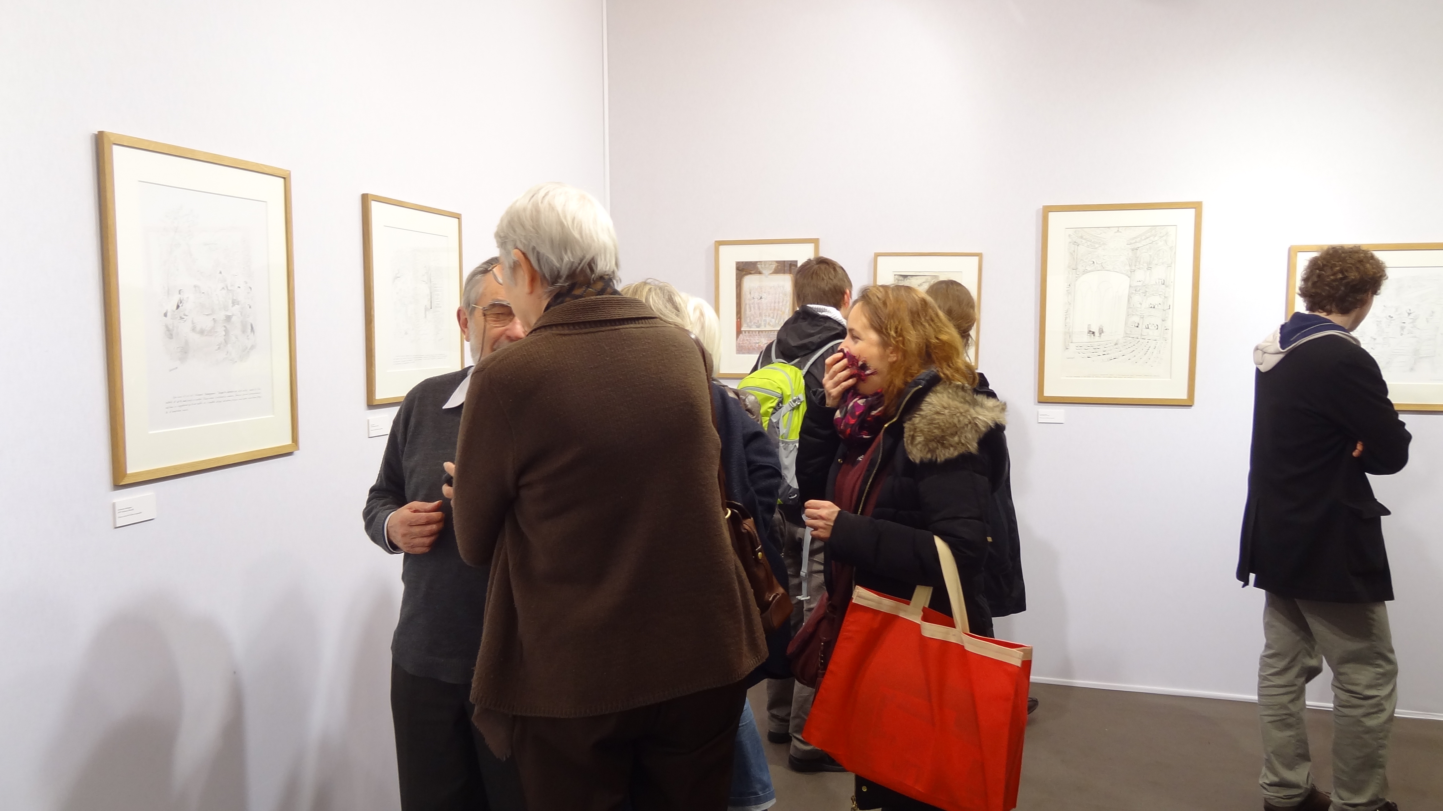 Et qui mieux que cette phrase, saisie au vol en naviguant de cadre en cadre, saura saisir l’essence de cette exposition : « Rapprochez-vous , Monsieur, le cadre est inutile, tout est dans le dessin... »