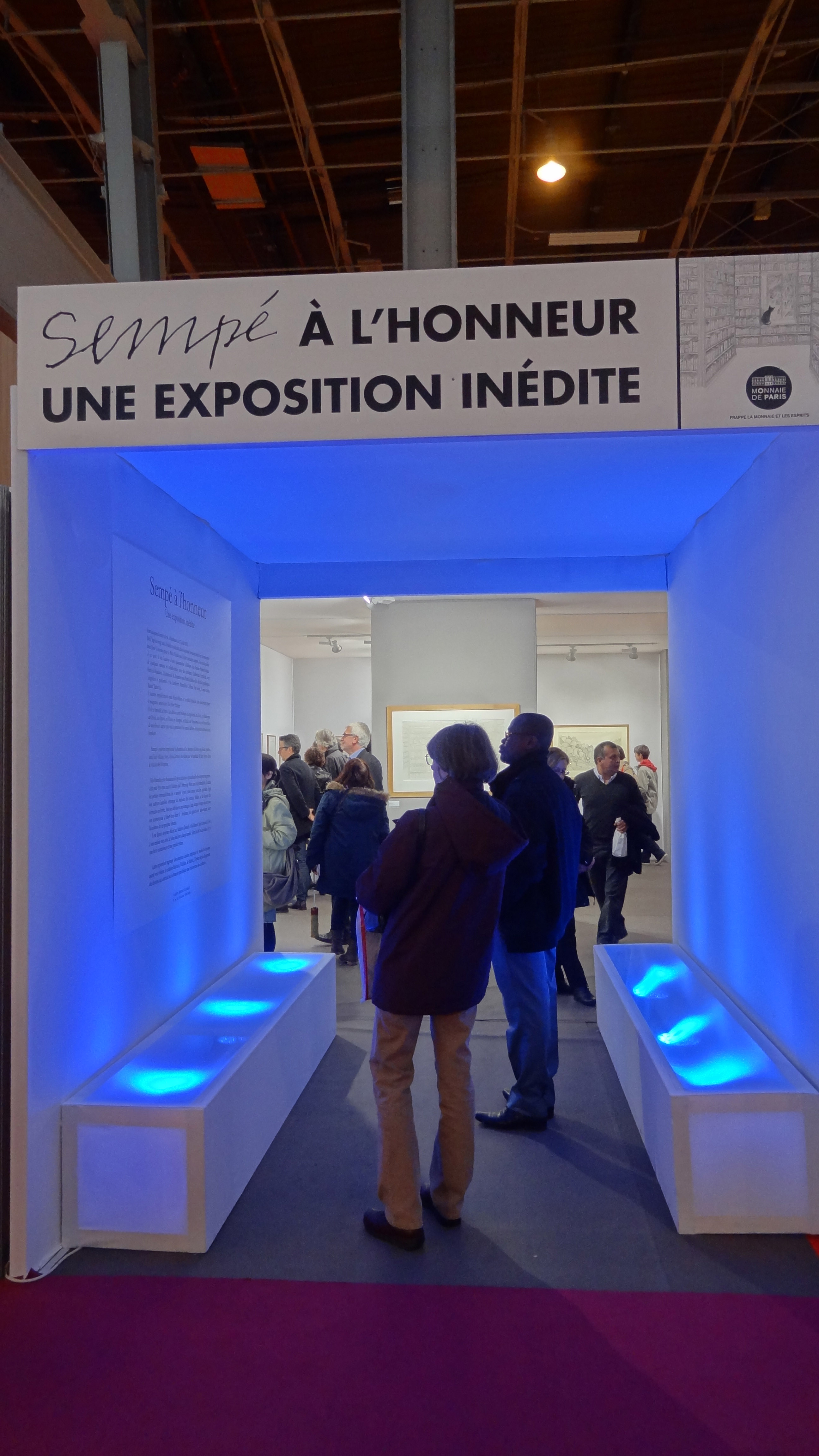 Que rajouter qui n’a pas été dit sur le style de Sempé, la précision des décors, la simplicité de ses personnages, la force de son humour ravageur, la douceur de sa tendresse, la concision de ces images ? Qu’importe ! Si vous allez au Salon du Livre, contentez-vous de trouver le petit passage, accès discret à l’exposition et profitez de cette pause pour savourer ce voyage si loin, si proche...