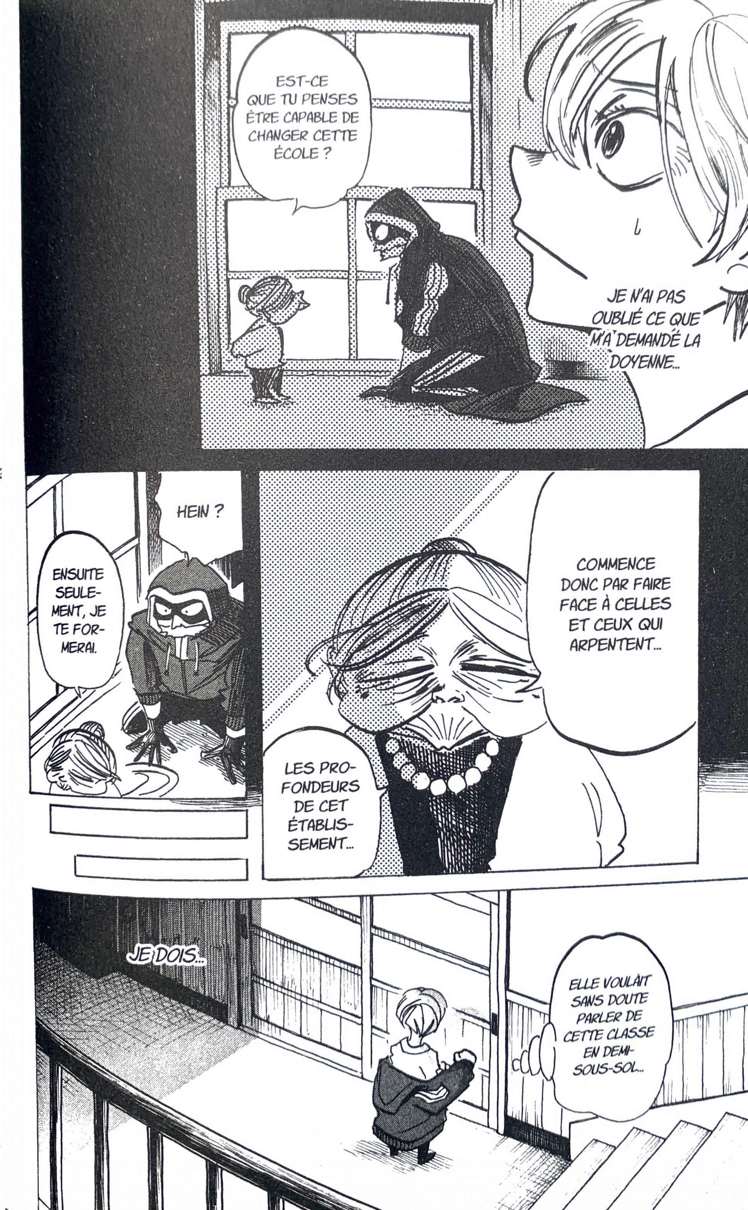 Mais dans cette quête de la Fontaine de Jouvence, ne perdent-ils pas quelque chose d’essentielle ? Comme le montre la Doyenne de l’école, petite femme toute ridée de 95 ans, vieillir peut avoir du bon mais il ne faut pas oublier son innocence au passage... Paru Itagaki nous le rappelle et nous offre l’opportunité de la retrouver, ou de la conserver, avec cette histoire.