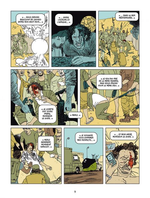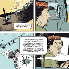 Critique : C’est une enquête hors norme qu’ont livrée les différents reporters qui signent l’ouvrage. Probablement la plus importante, la plus grave, la plus phénoménale de la Ve République... et pourtant l’une des moins bien médiatisée. Alors qu’un procès où se mêlent corruption financière, diplomatie préférentielle et guerre pour faire taire bat son plein, il faut une bande dessinée en forme d’enquête pour saisir tous les tenants et aboutissants de ces liens entre deux clans, celui de l’ex-dictateur Kadhafi d’un côté, et celui de l’ex-président Sarkozy de l’autre. L’avantage de ce format, c’est la clarté absolue qui s’en dégage : à l’aide d’un narrateur qui intervient en forme de point d’interrogation, c’est une trame chronologique qui est ici détaillée, avec à chaque fois des documents, des preuves donc, qui viennent se greffer pour étayer ce récit proposé. Si certains dialogues sont imaginés, l’ensemble propose un déroulé crédible, qui n’aboutit qu’à une conclusion de la part du lecteur, et des enquêteurs : la culpabilité de tous ceux qui ont joué un rôle dans cette immense et sombre affaire. Car il faut le rappeler, la France est entrée en guerre contre une seule dictature au XXIe siècle, la Libye, pour des raisons à l’époque floues mais qui désormais ne laissent aucune place au doute. A la question de savoir si M. Sarkozy est coupable d’avoir échafaudé ce plan de financement occulte puis d’effacer ses traces ou seulement d’être un incompétent incapable de se renseigner sur ce qui se passe sous ses yeux, le lecteur pourra se faire sa propre idée, et aller ou non dans le sens de ses avocats...