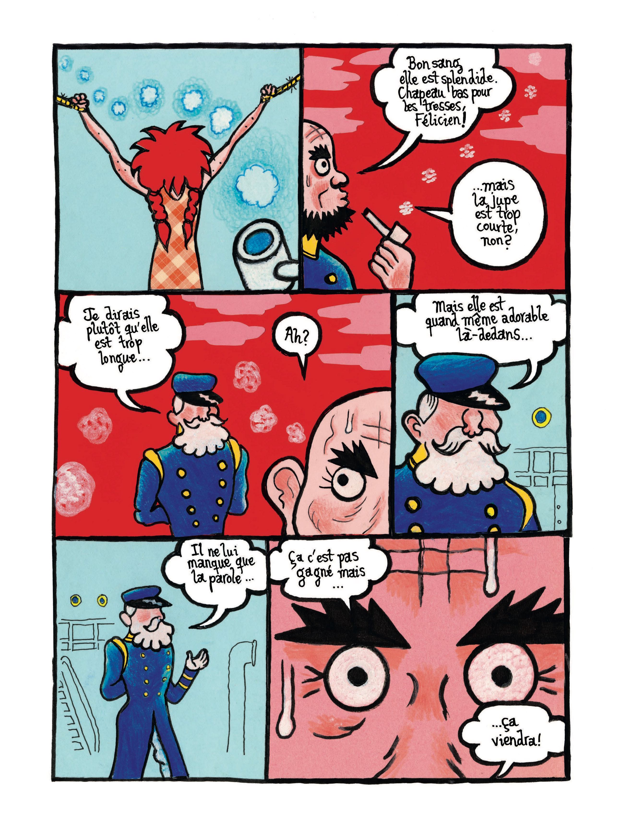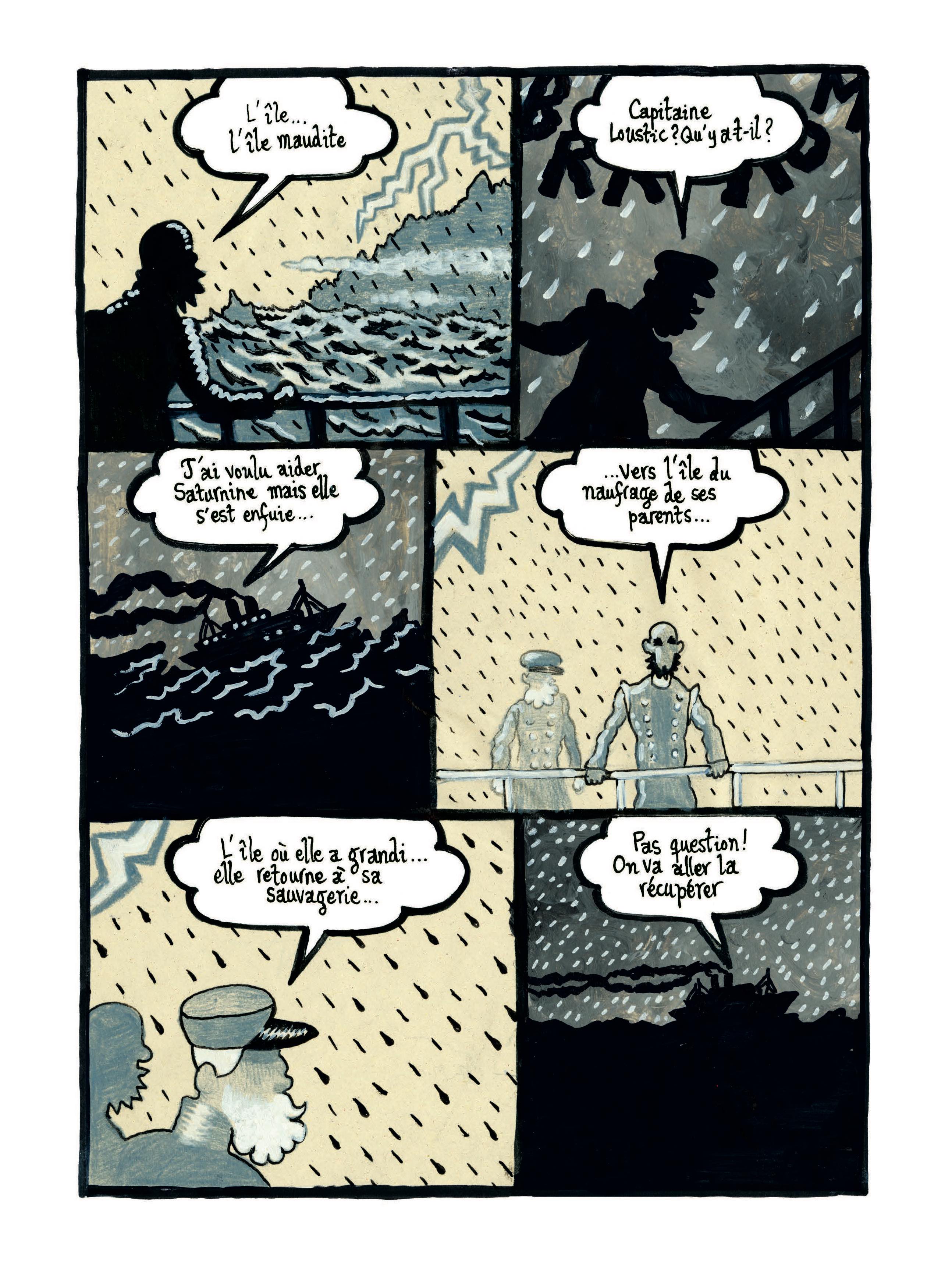 Cet auteur incontournable nous ayant habitués davantage au noir et blanc qu’à la couleur, l’usage de celle-ci peut surprendre, mais il est tout à fait judicieux. Des oranges des singes aux bleus des éléments maritimes, les couleurs apportent un éclat qui renforce l’étrangeté et la violence du récit.