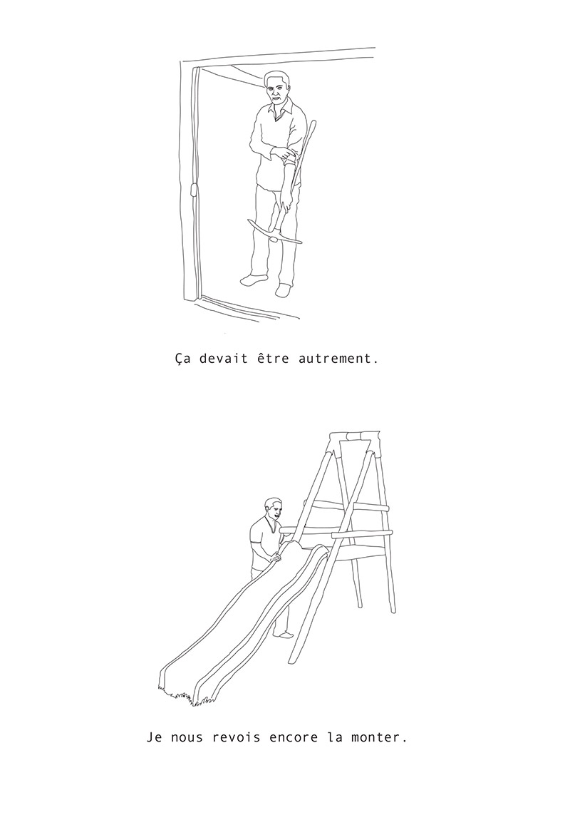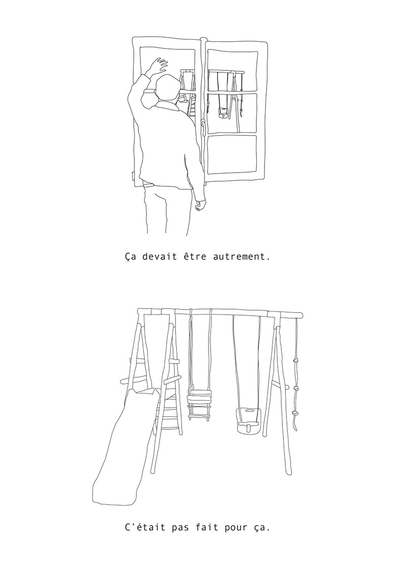 Du côté du dessin, ce crayonné qui mise sur un seul trait, noir sur blanc, sans cases ni bulles, donne un effet de photographie, d’instantané un peu léger au début, mais qui convainc très rapidement. Pour les habitués du très bon blog de Fortu, l’expérience n’est pas inédite, mais les nouveaux seront rapidement séduits par ce toucher, ce fil qui dévoile pudiquement des parts de vie. Car les histoires, si elles ont un titre, n’ont pas de véritable fin, et peuvent continuer au gré des imaginations. Comme le trait, rien n’est vraiment figé dans Saudade, et cette impression se confirme au fil des pages.