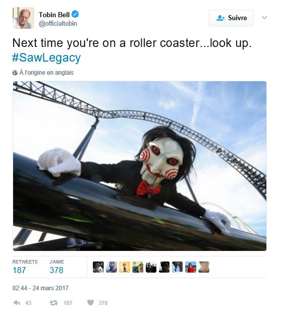 Le retour du personnage de Tobin Bell dans l’arène sanglante est surprenant, sa carcasse ayant été dépecée dès le 3e volet, chacune de ses apparitions par la suite, étant dû à des stratagèmes de narration cocasse. En postant une photo sur les réseaux sociaux mettant en scène sa poupée diabolique sous des montagnes russes, annonce une suite plus spectaculaire, ouverte, avec des jeux mortels d’envergure.