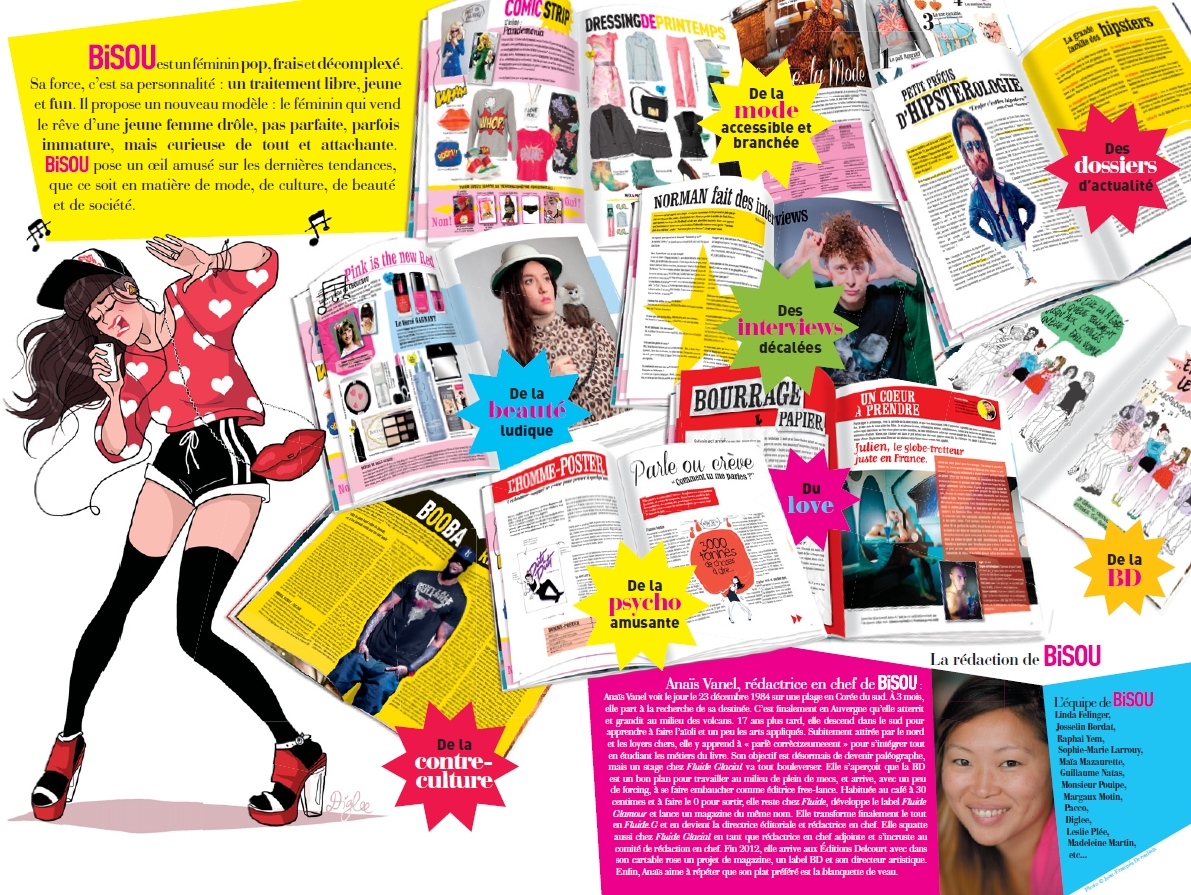 Anaïs Vanel, la redac’chef “ ne voulait pas choisir entre être belle et amusante, légère et intelligente, vraie et branchée,"et c’est comme ça que Bisou est né.