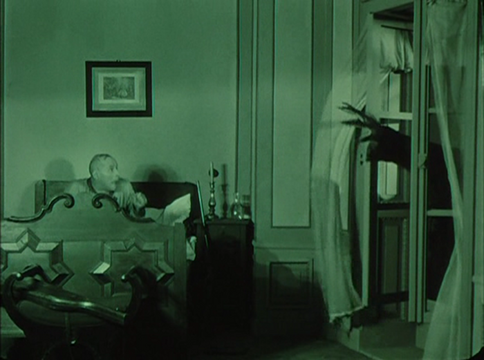 Mais ce jeu comme en suspens des acteurs, qui se figent soudain en adoptant un regard vide, et les nombreux plans tableaux énigmatiques minent l’apparence lisse et policée, faisant pressentir la présence d’un autre film souterrain, fait de pulsions inavouées qui ne demandent qu’à s’étaler au grand jour. Les rêves qui font surgir les peurs et les désirs réprimés (la main géante qui entre dans la chambre de l’homme peureux (Julius Falkensein) ou le mitron s’empiffrant de pâte à gâteau tout en giflant méthodiquement le chef cuisinier sous l’oeil bienveillant du moine) font écho au lourd secret du baron et surtout de la baronne Safterstädt.
