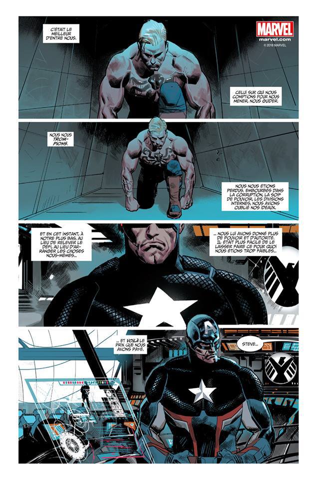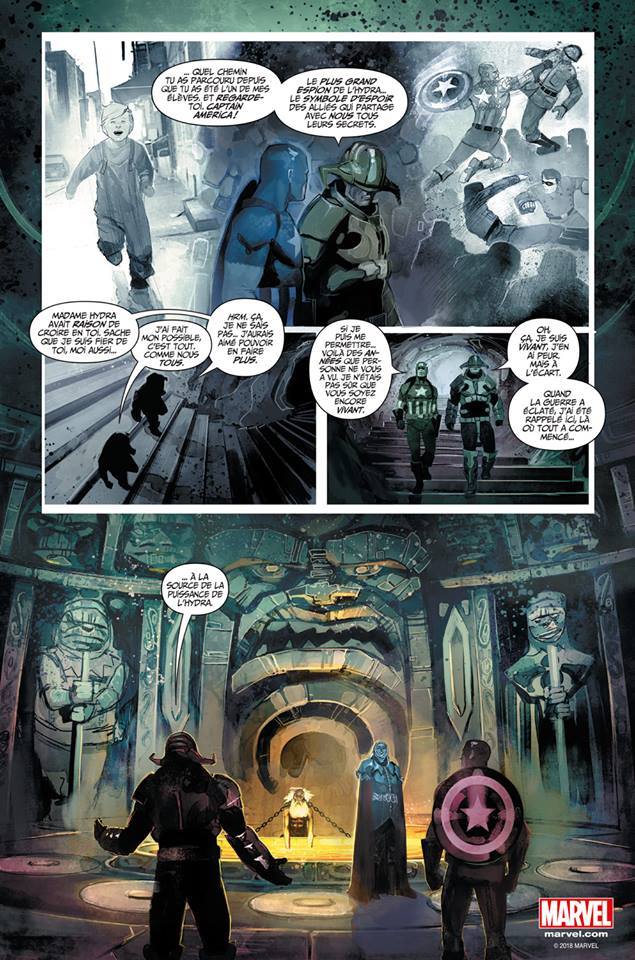 Le concept du "Et si" est l’un des piliers de la culture comics en général et de Marvel en particulier. Les penseurs de la Maison à Idées n’ont eu de cesse de redessiner de nouvelles réalités pour mieux repartir à zéro : les années Ultimate, la saga House of M, les mondes parallèles comme celui d’Old Man Logan etc. Le procédé est d’autant plus facile quand on a un cube cosmique qui se balade sur Terre et peut remodeler le présent à sa guise - ou pire à la guise de vilaines mains comme c’est souvent le cas. Arrive donc le tour de celui que l’on pensait intouchable, droit, incorruptible s’il en est et à la morale aussi pure que ringarde. Oui c’est bien du centenaire Captain America dont il est question. Il est aujourd’hui à la tête des États-Unis, agissant en tant qu’agent double pour l’Hydra, en somme ce qu’il combat depuis qu’il est en âge et en mesure de combattre. Le jeu de miroir est d’emblée installé et la saga de Nick Spencer évacue très vite les zones d’ombre : Cap est bien passé du côté des tyrans, aucun doute là-dessus. Ce qui n’a d’ailleurs pas manqué de créer une controverse farouche autour d’un héros qui, né de l’imagination de juifs immigrés, incarnait bien plus qu’un super-héros patriotique. Mais le soufflet est retombé à la fin de l’event l’an passé aux États-Unis... prise dans son hystérie précoce comme toujours.