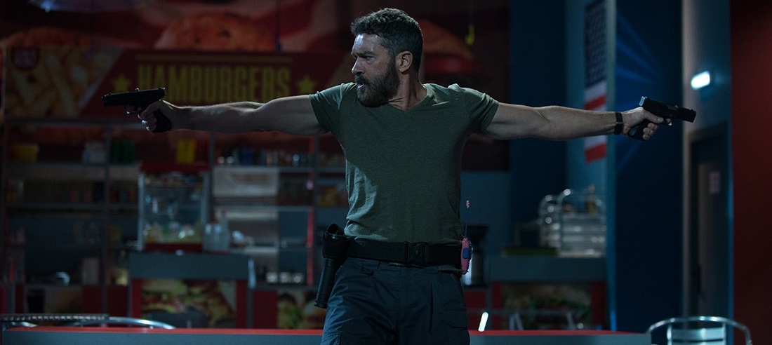 Très honnête dans son contenu, Security se repose sur une progression attendue mais qui au moins n’a pas la lâcheté de se défiler au moment venu. On s’attend à de l’action, et ce n’est ni plus ni moins ce à quoi nous assistons avec le film d’Alain Desrochers passé la présentation de ce centre commercial pas forcément très bien cartographié, mais dont au moins le scénario tire légèrement profit. Aucune utilisation du lieu aussi maligne qu’un Piège de Cristal (ou plus récemment et dans plus étroit, un Don’t Breathe), un potentiel exploité a minima, mais assez pour assurer le spectacle lors de séquences d’actions pop-corn et (Ô mon Dieu !) lisibles. Security ne nous épargne pas quelques bouffonneries, comme des coups de ninja improbables, des armures récupérées à bas prix sur eBay du G.I. Joe de 2009, ou une surenchère de trucs qui cassent et font boum, mais toujours conscient du fun que peut avoir ce genre d’idées stupides. Même dans une pareille proposition, Alain Desrochers sait s’appuyer sur un scénario pas trop dégueulasse et sur un Antonio Banderas très convaincant pour contrebalancer la crétinerie amusante des gunfights et autres combats par un sérieux plutôt déstabilisant car inattendu. Ainsi, Security peut s’interpréter comme la rédemption d’un homme bousillé par la guerre, offrant avec simplicité une justification attachante à ce combat d’une nuit, efficace et divertissant.