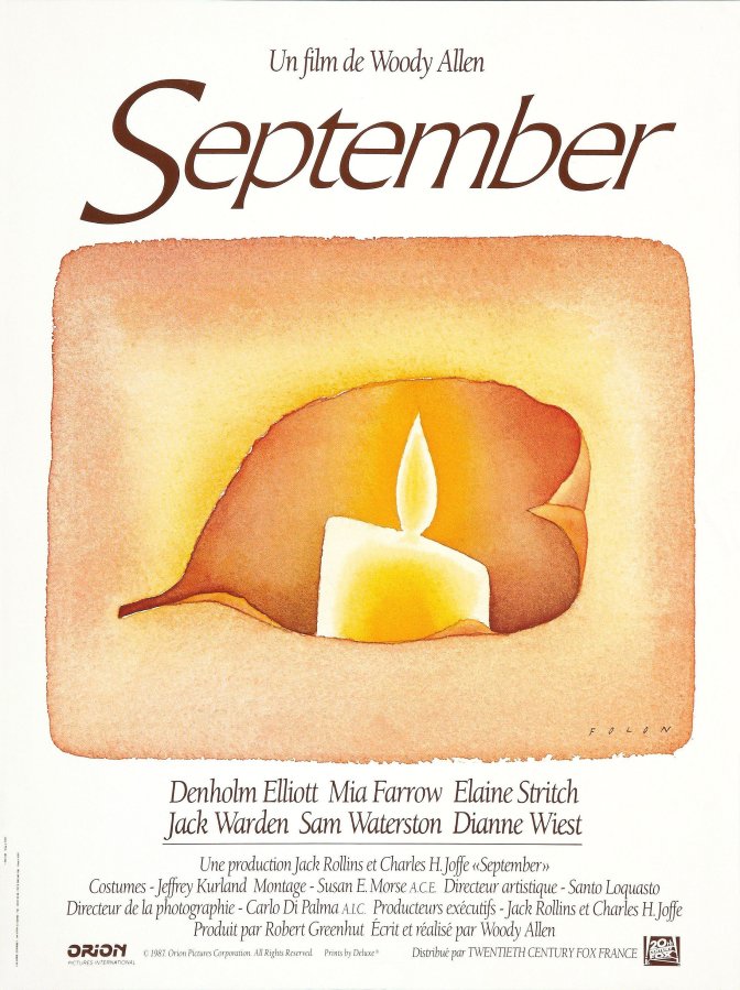 Notre avis : Les années 80 sont pour Woody Allen une période d’intense production, ce qu’il confirmera par la suite, mais avec une inspiration constante et quelques œuvres majeures. Parmi celles-ci, September, qui appartient à l’ensemble consacré à Mia Farrow, se présente comme un huis-clos bercé de tendre mélancolie. Dans une maison familiale, Lane accueille sa mère et son beau-père, un écrivain, Peter, sa meilleure amie, Steffie, et un voisin, Howard. À la manière de Tchekov, ils parlent, se dévoilent ou se dérobent. Peu de bruit cependant : le seul éclat est une dispute entre mère et fille qui culmine avec la divulgation d’un secret. Le reste est feutré, sensible, plus drame intime que tragédie.