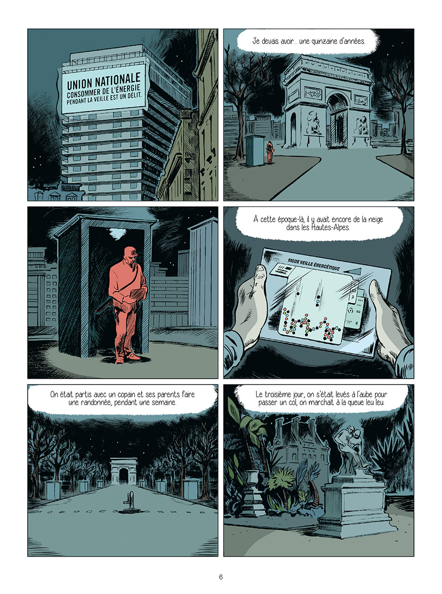 Kader est un ouvrier chargé de surveiller les champs éoliens d’une France de 2050, subissant le couvre-feu et les contrôles drastiques d’un État autoritaire. Sa vie n’est cependant pas celle de tout le monde : ancien collaborateur politique, il a subi une injection d’un sérum de vérité nouvelle génération, qui l’oblige à dire la vérité tous les jours, à tout le monde. Sartre a dit que l’Enfer, c’est les autres, mais la vérité perpétuelle y ressemble. Le fardeau de cette obligation passe au début inaperçu dans un monde fasciste, où un coup d’État a mis au pouvoir une présidente qui a des airs d’extrême-droite, dans une France repliée sur elle-même, mais encline à frapper ceux qui ne se courbent pas assez. Pourtant, le titre de l’œuvre prend de plus en plus d’importance au fil des pages, tant il impacte la vie quotidienne du héros, avant de s’infiltrer dans toute la trame du scénario. Kader correspond à un antihéros, le sérum l’a réduit à parler peu, et souvent mal aux gens qui l’entourent. Alors qu’il apparaît apathique, on nous explique que c’est à cause de la médication, s’il est trop discret discret, c’est pour éviter les représailles qu’il a déjà subies. L’épisode qui le montre en médiation avec son ex-femme et surtout sa fille correspond à un point de bascule : humain, le héros effacé fait pitié, mais de manière très empathique. Sa tristesse le porte alors dans le cœur du lecteur, qui peut s’attacher, donnant à l’œuvre une portée sensible que le décor et le rythme empêchaient jusque là.