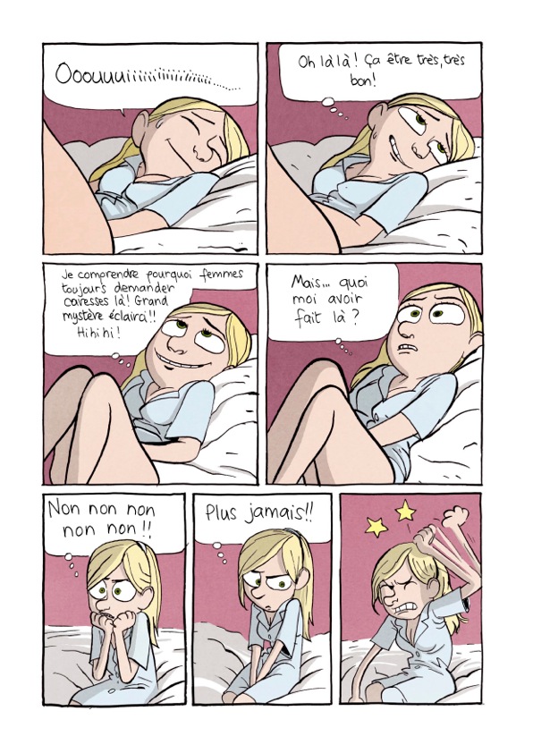 Une BD drôle et sexy, qui traite intelligemment un sujet grave de notre société. En plus, elle a été validée par Maïa Mazaurette (La coureuse, Les Hommes en 30 Modèles, Péchés Mignons) sur son blog, marque de qualité, un peu le label rouge (rose ?) de la sexualité.