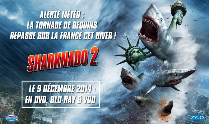 Notre avis : En rassemblant pas moins de 3,9 millions de téléspectateurs avides de nanar cheap lors de sa première diffusion aux Etats-Unis sur SyFy (le plus gros score de la chaîne à ce jour pour un téléfilm), Sharknado 2 crée le buzz. Les réseaux sociaux s’emparent eux aussi de la tornade de requins avec un demi million de tweets générés dans la soirée. La production Asylum réussit à tirer profit de son script volontairement Z qui part en vrille dans les grandes largeurs. Car visionner un volet de Sharknado, c’est faire abstraction de toute forme de logique cartésienne durant 1h30mn, paré d’un regard gentiment moqueur (les incohérences du film sont incalculables !). À l’instar de son modèle, ce second volet se contente encore une fois d’aligner les effets spéciaux numériques à deux francs six sous intégrés maladroitement en post production, sans aucune bienveillance cinématographique (la réalisation d’Anthony C. Ferrante, à peine meilleur que sur le premier, demeure toujours au ras des pâquerettes...).