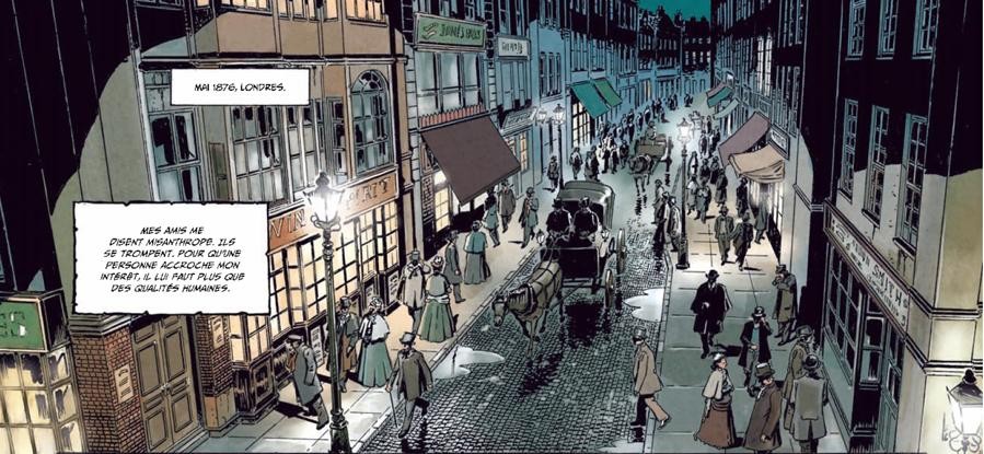 Une œuvre qui retranscrit subtilement l’environnement dans lequel Holmes va évoluer et préfigure les aventures que Conan Doyle lui fera vivre dans ses livres. L’équipe nouvellement créée avec Nespolino au dessin et Gonzalbo aux couleurs aboutit à un format uni et cohérent tant au niveau des personnages que des décors.