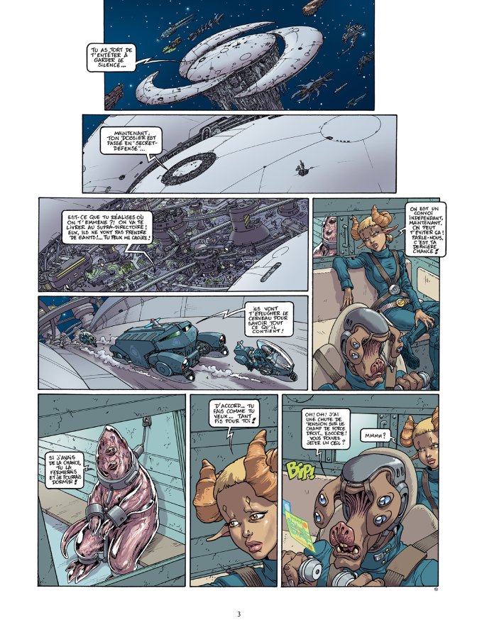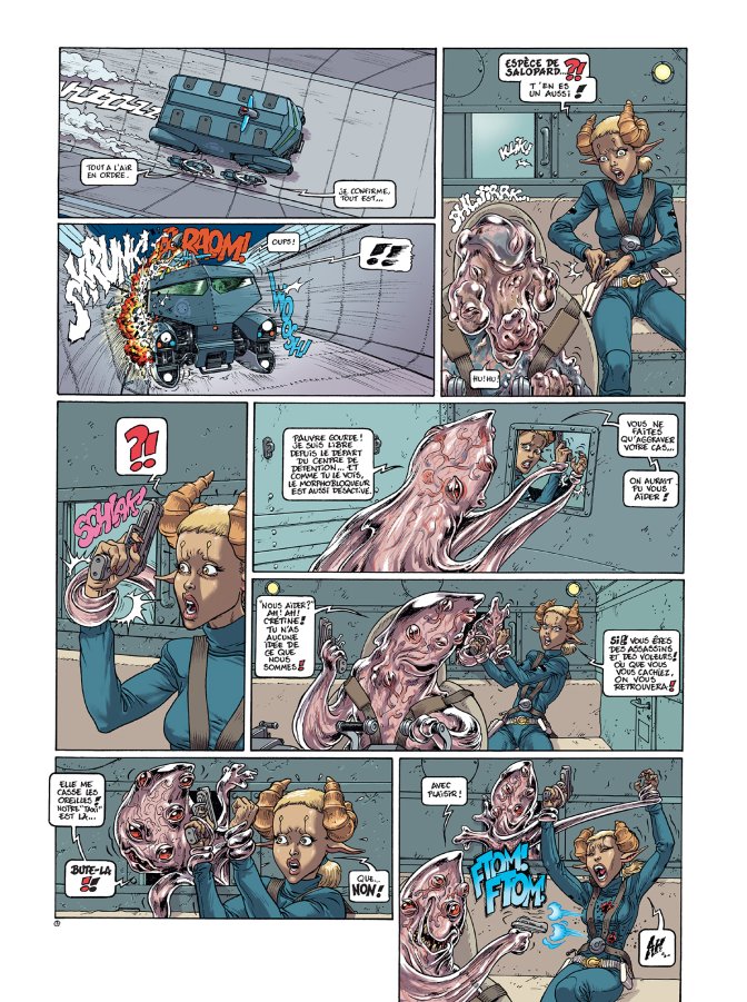 Pour ce qui est du décor, Philippe Buchet ne déroge pas à la règle de la série : des vaisseaux et des extraterrestres crédibles. Une bonne dose d’action au début, avant un calme façon Ad Astra. Non, la vraie originalité, c’est l’importance des humains, puisque jusque là, hormis Nävis et des races proches, les humains étaient absents. Pour autant, on a l’impression qu’ils ont toujours été là, tant les nouveaux personnages apparaissent familiers et en accord avec le reste de la série. Pas de doute, le talent est là et continue de dessiner les contours d’une saga désormais intemporelle.