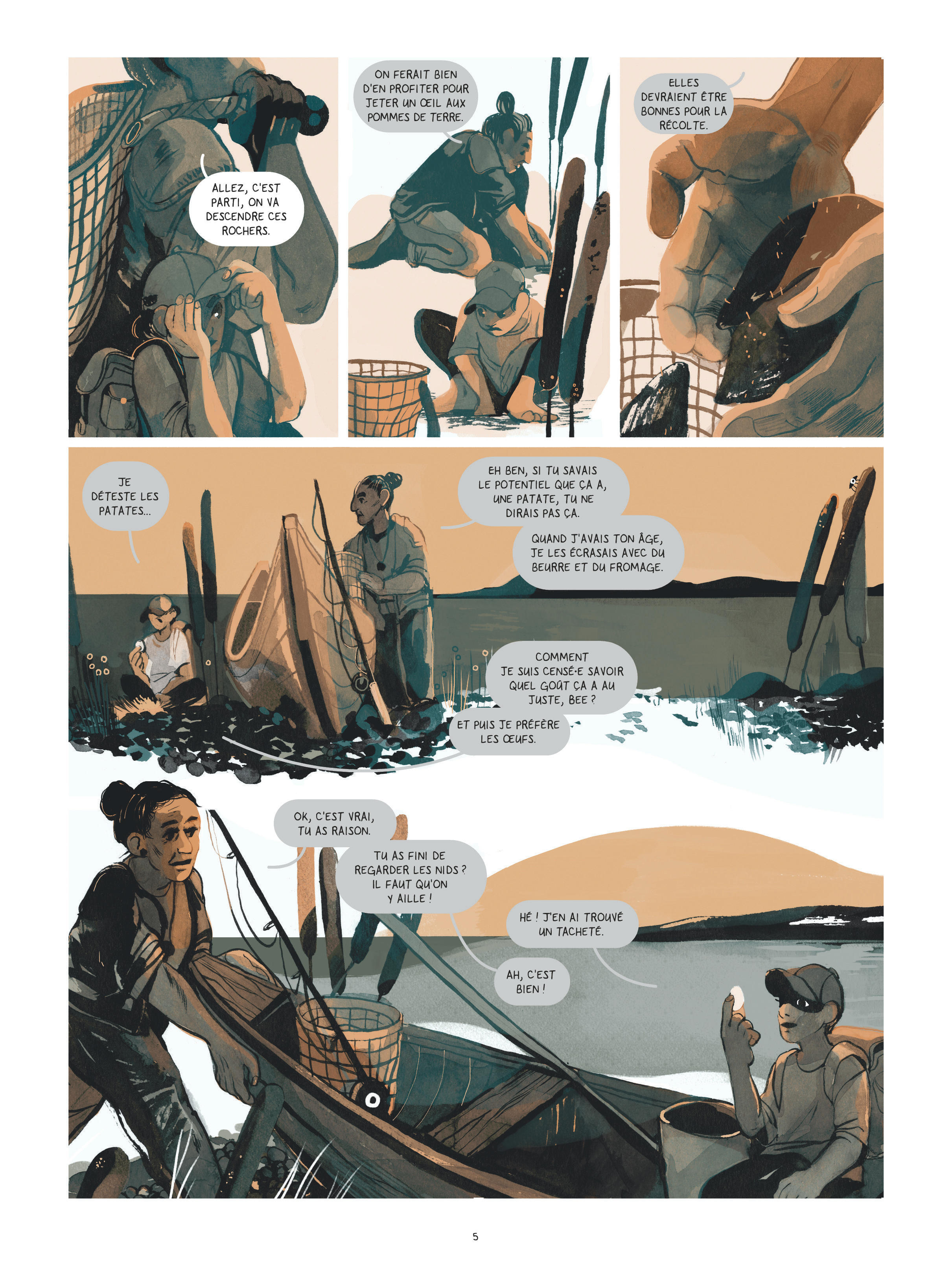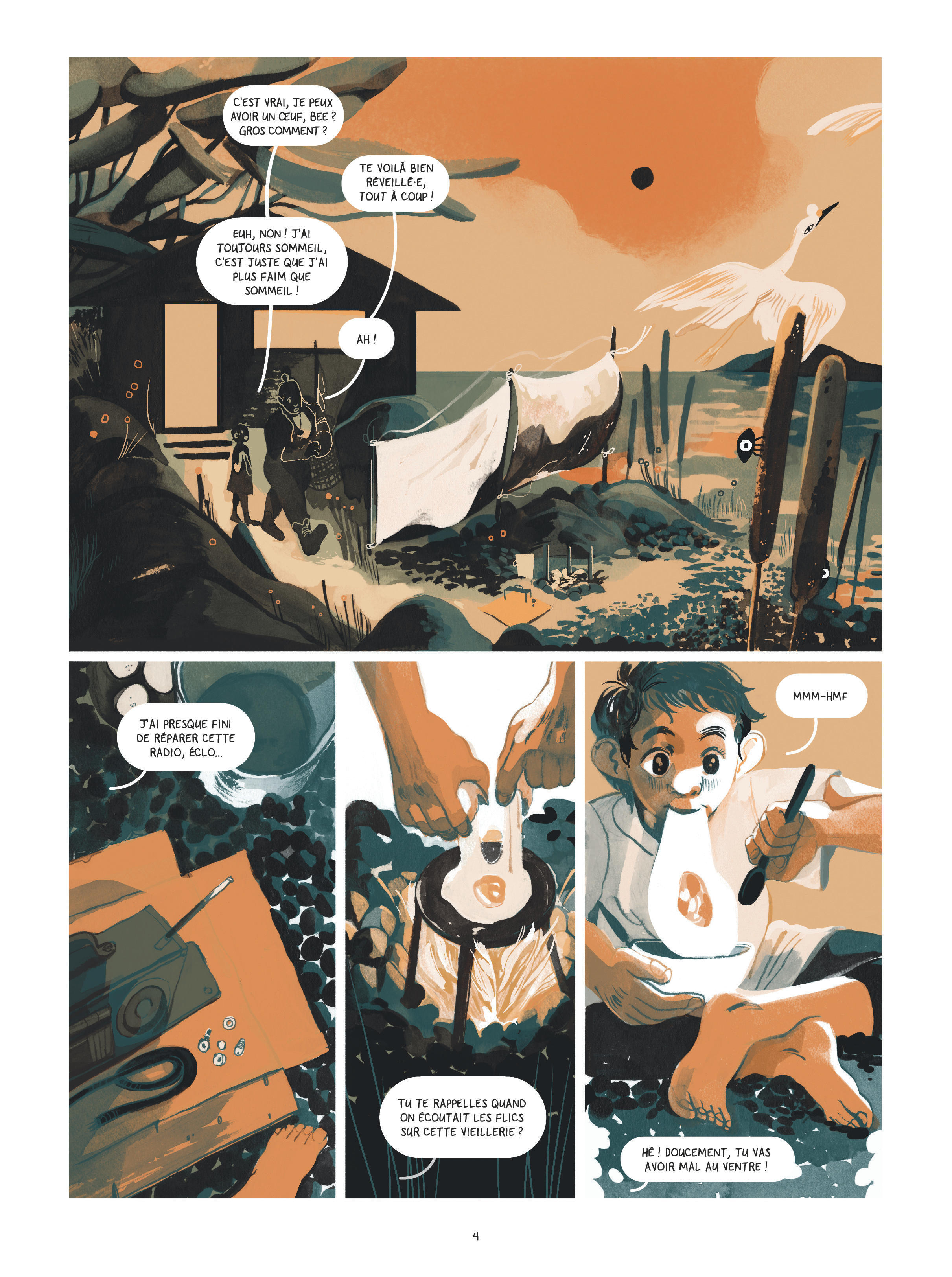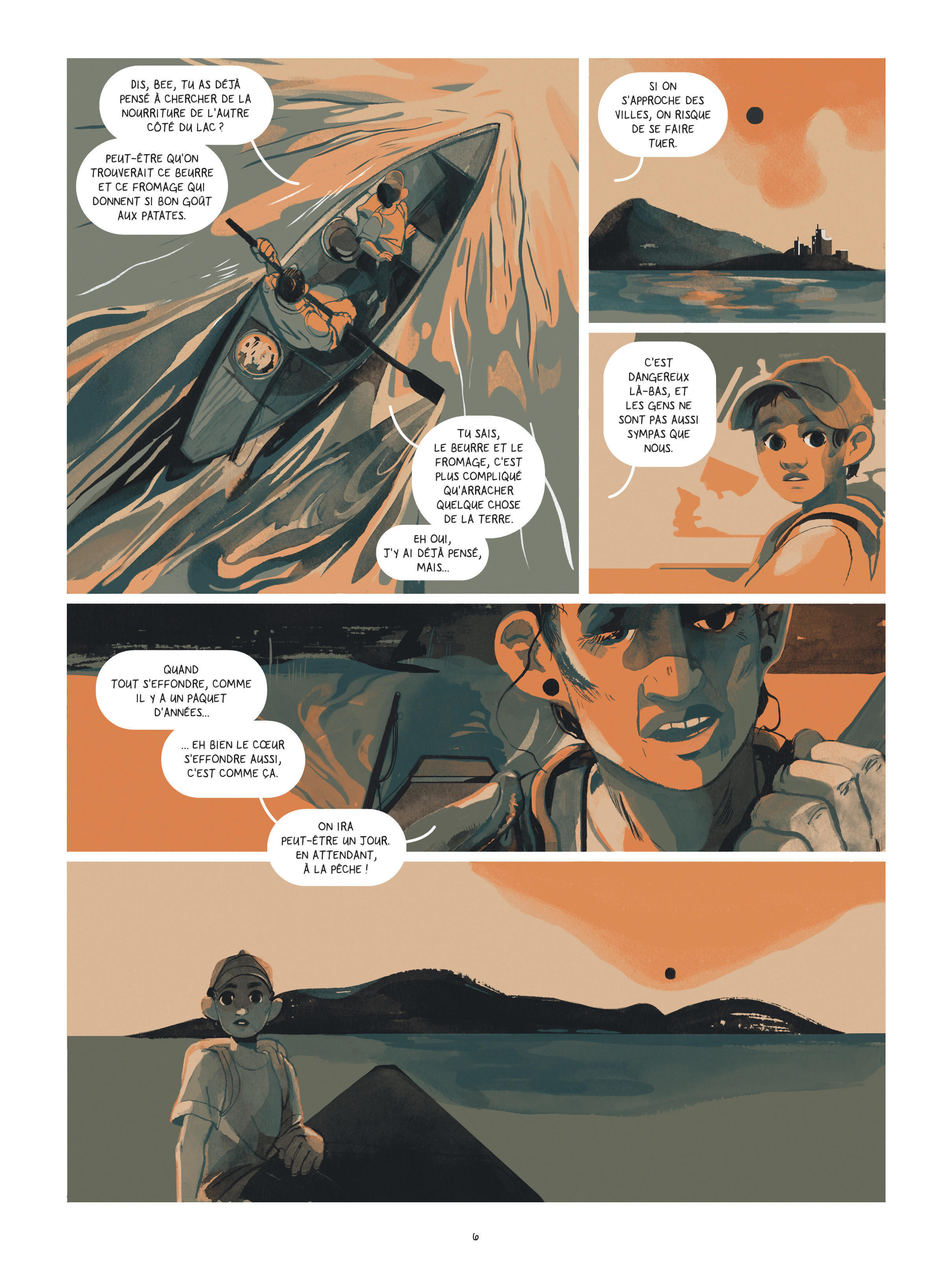 Résumé : Eclo vit au bord d’un lac avec Bee. Quand Bee intercepte un appel radio, il/elle va à la rencontre des personnes l’ayant lancé. Resté.e seul.e, Eclo bascule dans un autre monde où il/elle rencontre Gluan, un être toujours prêt.e à l’aventure et à ne pas rentrer chez lui/elle, alors qu’Eclo aimerait bien pouvoir retrouver les bords de son lac.