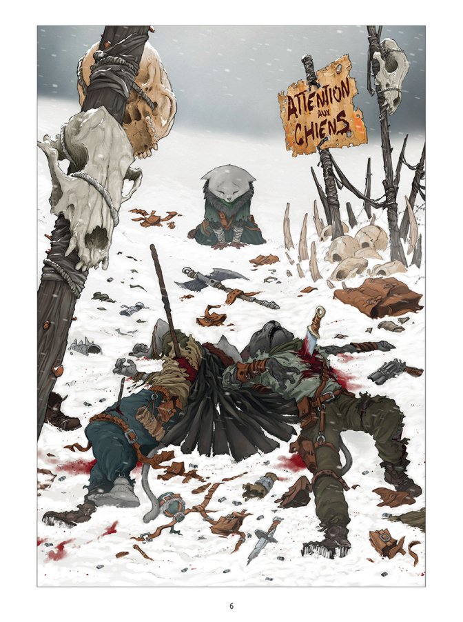 Les héros anthropomorphes ont connu une heure de gloire en BD. Blacksad évidemment, mais aussi De cape et de crocs, Donjon et bien d’autres avaient repris ce procédé vieux comme Ésope qui consiste à personnifier les animaux. En prenant un monde post-apocalyptique proche de La Planète des singes ou de Neige, en y insufflant une mythologie qui n’est pas sans rappeler La Horde du Contrevent, Solo : Chemins tracés reprend des conventions déjà vues mais sait s’en saisir avec style. En effet, les personnages y sont d’abord à la fois denses et éphémères, car ils se permettent d’acquérir une épaisseur en peu de temps sur les pages, car, comme son titre l’indique, Solo est d’abord une épopée solitaire. Un amoureux, un grand-père, pourquoi pas un ennemi pourraient être davantage développés, mais ceci irait à l’encontre du titre et du mantra de la série. À voir maintenant comment la suite pourra suivre ou contourner cette loi...