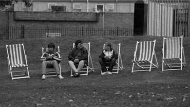 Dans le même esprit que celui du « jeune turc » des Cahiers du Cinéma, Shane Meadows s’attache à montrer la difficile réalité d’adolescents livrés à eux-mêmes dans un monde où leur existence est friable. Les deux compères de son cinquième long-métrage vivent en vase clos, dans un univers peuplé de rêves et d’espoirs. Les petits bonhommes ne sont ni malheureux ni les victimes impuissantes d’une violence sociale qui les dépassent. Ils tombent bien souvent, confrontés au monde extérieur qui leur semblent, du haut de leurs quinze ans, insurmontable et cruel. Rien ne réussit cependant à les faire redescendre de leur nuage : leur naïveté les préservent de la délinquance et des désillusions blessantes. Le cinéaste contemple avec tendresse ses jeunes héros qu’il filme à leur hauteur ; Somers town est une œuvre sur l’enfance, à travers les yeux des premiers concernés. Le point de vue n’est pas biaisé par des considérations d’adulte et des contre-plongées insistantes. Bien au contraire, un long plan large montre les deux amis postés sur une terrasse devant un ciel qui s’étire à l’infini et face à la gare qui les emmènera au-delà des frontières de leur quartier : l’avenir leur appartient.