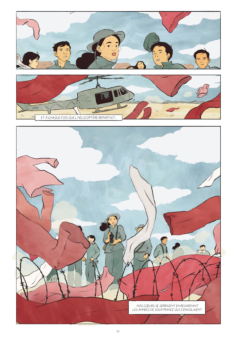 Comme le reconnaît Hai-Anh, il est probable que Linh ait enjolivé ou reconstruit certains événements. Mais l’intérêt de Song ne se limite pas à son témoignage historique. Le récit de jeunesse de Linh constitue en effet un prétexte pour retisser une relation mère / fille abîmée. En s’appropriant l’histoire de sa mère, Hai-Anh se réconcilie avec ses origines, en témoigne le choix qu’elle fait de partir vivre au Vietnam. La scénariste partage ce récit avec la dessinatrice Pauline Guitton, une amie d’enfance dont c’est la première bande dessinée. La dessinatrice opte pour une ligne claire et un découpage efficace pour donner du relief à cette histoire intime qui, comme toutes les bonnes biographies, touche une part d’universel.