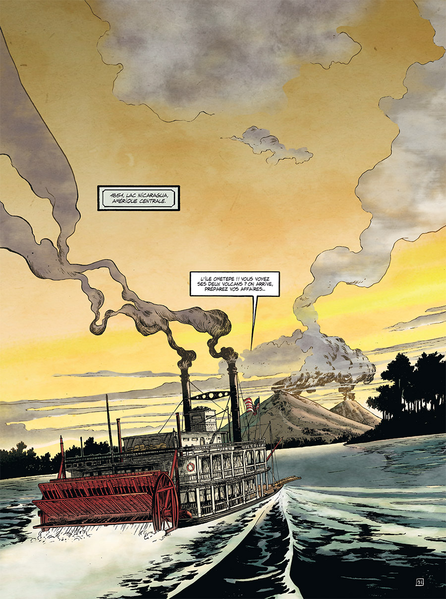 Au milieu du XIXème siècle, la fièvre de l’or s’est emparée de la côte Ouest des récents États-Unis. Pour arriver jusqu’à Californie, on quitte les continents et on laisse son passé derrière soi. Ce n’est pas le cas de Maximilien Bonnot, ancien révolutionnaire français, qui cherche à apaiser sa soif de vengeance. Pour parvenir à son but, il faudra se montrer aussi rapide d’esprit que pour dégainer, car les dangers guettent partout dans cette terre sans foi ni loi... Western plus baguette que spaghetti, Sonora se lance dans le Far West avec un accent frenchy, et surtout une dimension historique assumée et précise. Cette volonté farouche d’exactitude se retrouve par exemple dès le début dans l’utilisation d’un vocabulaire d’époque, qui interpelle directement le lecteur. Du coup, comme les références à la révolution de 1848 sont nettes, l’influence de Victor Hugo pèse dans cette nouvelle série. De fait, ce que raconte ce premier tome de Sonora, c’est la petite Histoire, celle des renégats et des oubliés, des mauvais bougres et des êtres en quête de rédemption, pas loin des Misérables, mais transposés au Nouveau Monde. La ruée vers l’or prend donc une tournure à la fois épique, avec des duels, des références historiques de personnages et de dates, et aussi réaliste, avec des lieux sales et sordides, une anarchie latente symbolisée par les arrivées de prostituées dans un monde qui manque de femmes, mais pas de criminels. Une histoire de vengeance qui démarre tambour battant, après une sorte de prologue en Amérique du Sud, mais qui s’inscrit vite sur le sol américain.