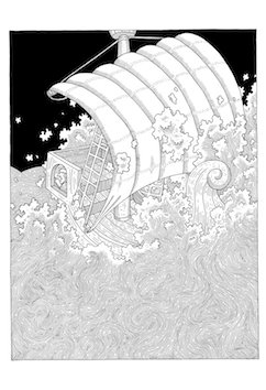 Le parcours épique de Célestin semble ainsi en réalité guidé par les voies menant aux joies de l’image, de ses détournements, de son ancrage dans nos légendes collectives. De l’impressionnisme de Van Gogh à l’art antique grec en passant par la gravure médiévale ou les miniatures orientales, le livre traverse ainsi les âges et les frontières esthétiques. Une jouissance donc, du trait, du motif, de la diversité, mais toute en retenue ; car chez Sophie Guerrive, rien ne dépasse. La précision de ses originaux n’en est que l’ultime preuve.