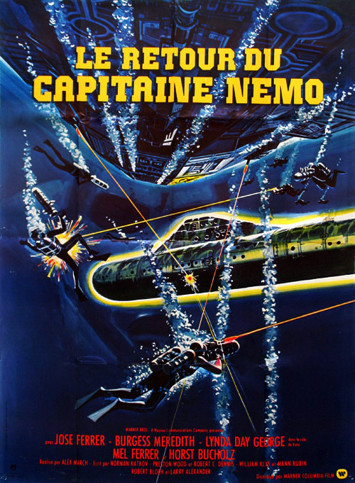 – Le retour du capitaine Nemo d’Alex March et Paul Stader : il faut de tout pour rêver, même des petits budgets d’exploitation ratés. Cette production avec Mel Ferrer (un signe de médiocrité, mais un nom sur l’affiche tout de même) surfe sur l’appétence pour les continents oubliés et les aventures insulaires à la Jules Verne, à une époque où le TGV n’existe pas, la Poste s’appelle les PTT et le monde paraît encore être une terre inconnue à conquérir.