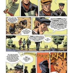 Henri est un mineur en colère, comme beaucoup dans ce Nord de la France de la fin du XIXème siècle puisque les conditions de travail sont harassantes, et il songe à fomenter une grève syndicaliste. Son beau-frère Lucien est plus placide, plus effacé, mais c’est pourtant lui qui va être entraîné dans une aventure où se mêlent le steampunk façon Mignola, la fantasy façon Tolkien et le romanesque façon Zola. Un cocktail inattendu, mais détonant comme un pack de dynamite : quelques détails peuvent parfois faire frémir le sourcil, quand on contemple les créatures abyssales ou le robot herculéen et très intelligent, mais l’ensemble est terriblement prenant, franchement excitant. Par conséquent, les détails deviennent une accroche pour les yeux du lecteur, quand il contemple par exemple les détails des monstres, sortes de nains géants croisés avec des salamandres, ou quand le robot sort de sa cache pour accomplir le travail de dix hommes devant les mineurs médusés. Planche après planche, chapitre après chapitre, car c’est une histoire complète et achevée, les mineurs font face à un destin économique et social avant de laisser place à la survie et l’héroïsme épiques, sans que l’œuvre en soit déstabilisée, bien au contraire. La couverture, et surtout l’apparition du prologue servent bien à dire que oui, Souterrains fait bien partie du domaine de la fiction, et s’il reprend le combat d’un Germinal, il a également vocation à dénoncer l’esclavagisme de toutes les époques, la nôtre y compris.