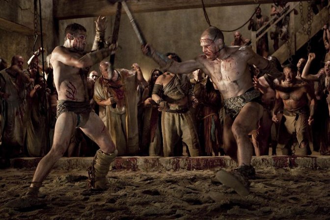 Filmé avec des moyens télévisuels et bien souvent dans des décors indigents, à peine rehaussés par les scènes d’effets spéciaux numériques ratés, Spartacus n’en demeure pas moins extrêmement ambitieux dans sa réalisation qui lorgne éhontément du côté de 300. Les ralentis et fioritures esthétiques sont légion, comme les répliques surréalistes qui se repaissent de grossièretés, toujours à caractère sexuel. Cela confère au spectacle un côté humoristique de foire parfaitement assumé.