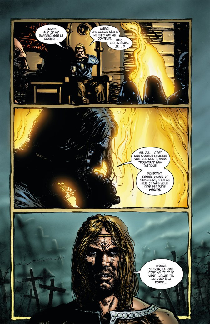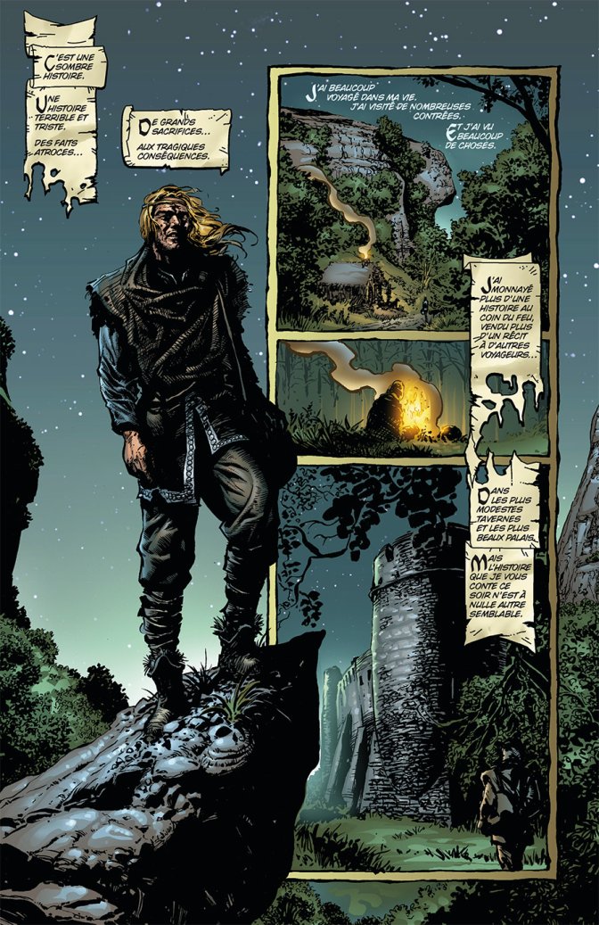 À l’occasion du vingt-cinquième anniversaire de la série iconique Spawn, un volume inédit vient garnir les rangs des libraires : Spawn Dark Ages, nommé en fonction de la période qu’il couvre. Car ce n’est pas Simmons le héros de cette imposante intégrale, mais Covenant, un lord anglais du Moyen Âge, tué à la croisade mais revenu hanter ses anciennes terres, désormais dévastées. Entre son passé mystérieux, son héritage opaque et des aventures toujours plus proches du Mal, l’adjectif sombre colle parfaitement à cet âge retranscrit dans ces pages, qui mêle légende arthurienne, Witchblade et contes folkloriques celtiques. Si l’action est forcément au rendez-vous et présente très tôt, la malédiction prend son temps, le personnage principal se dévoile peu à peu, l’intrigue se noue comme une toile lente pour enserrer complètement Covenant, puisque les ennemis seront nombreux et les embûches multiples. Les fans de la première heure verront d’un bon œil ce Hellspawn du passé prendre vie, et les amoureux de la période pourront chérir le combat entre le Bien et le Mal à l’époque des épées et des blasons, où la symbiose entre l’armure et le corps du Hellspawn se révèle particulièrement graphique. Ceux qui n’ont pas l’habitude du comic Spawn seront par contre probablement un peu bousculés par tant de visages maléfiques et la répétition de phrases toutes faites sur le destin et la souffrance. Par conséquent, un volume pour public amateur, recommandé pour les sombres disciples de la saga.
